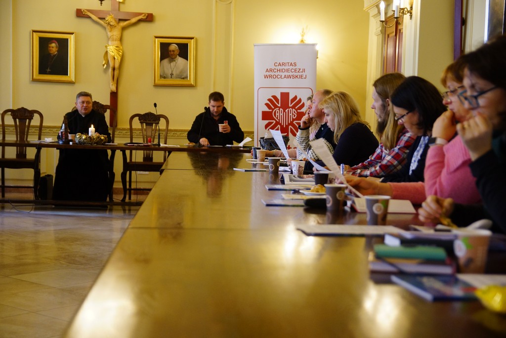 Opiekunowie Szkolnych Kół Caritas z Archidiecezji Wrocławskiej spotkali się we Wrocławiu aby wspólnie się formować i przygotować program działania na drugi semestr roku szkolnego. Podczas Eucharystii w homilii ksiądz Dariusz Amrogowicz, wrocławskiej Caritas zachęcił nauczycieli aby pokazywali dzieciom konkretne miejsca w których pomagają. – niech to o same dzieci zaniosą paczkę żywnościową, niech osobiście przekażą termosy dla potrzebujących – mówił dyrektor. – W czasach, w którym rzeczywistość wirtualna często przysłania młodym prawdziwy świat trzeba im pokazać, pozwolić dotknąć tego co słabe, tego co ubogie, niczym Jezus który dotykał trędowatego. Oni muszą widzieć real a nie tylko świat wirtualny – podkreślił ksiądz Amrogowicz.