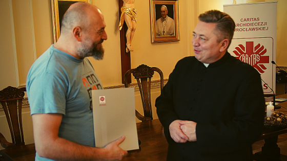 Podczas spotkania ksiądz dyrektor Dariusz Amrogowicz przekazał Robertowi Ruszczakowi, opiekunowi Szkolnego Koła w Liceum Sióstr Urszulanek Unii Rzymskiej akt powołania wolontariatu w tejże szkole. Uczennice i uczniowie tej placówki od wielu lat współpracują z Caritas Archidiecezji Wrocławskiej pomagając w przygotowaniu Wigilii dla ubogich i swoim śpiewem dodają świątecznej atmosfery spotkaniom opłatkowym dla potrzebujących.