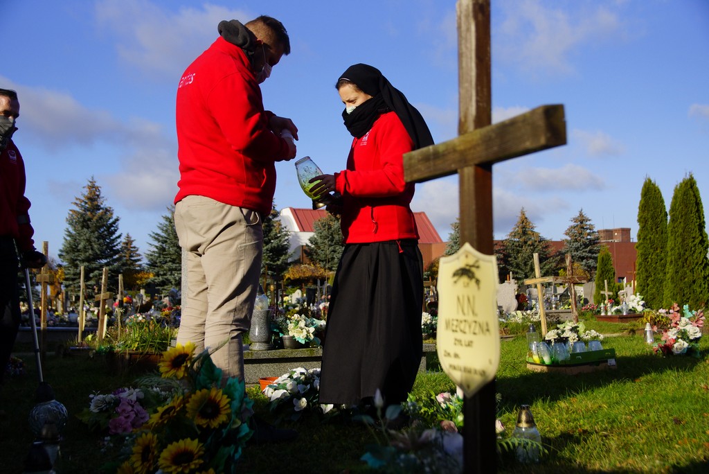 W ramach obchodów Tygodnia Ubogich pracownicy i wolontariusze nawiedzili cmentarz , na którym znajdują się groby osób samotnych i bezdomnych.