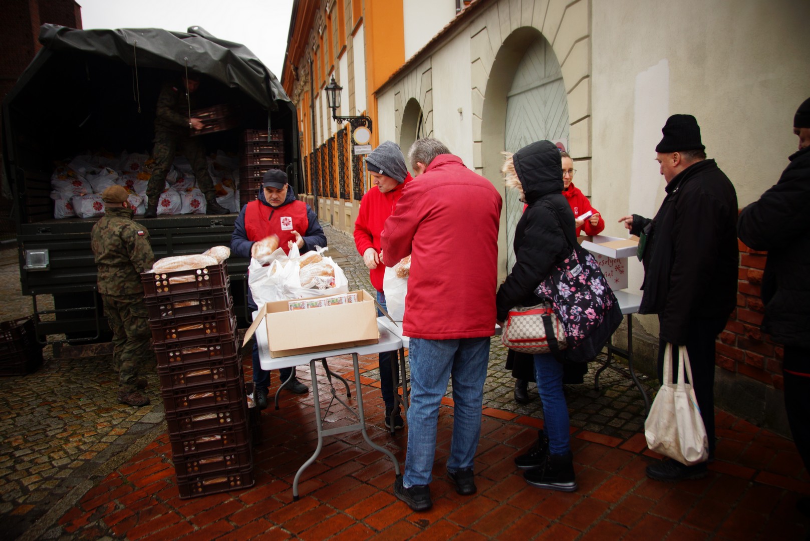 Poranek wigilijny na Ostrowie Tumskim zamienił się w prawdziwy zakątek miłosierdzia. W ramach corocznej akcji organizowanej przez Caritas Archidiecezji Wrocławskiej oraz miasto Wrocław osoby w kryzysie bezdomności i ubogie otrzymały świąteczne paczki żywnościowe. Akcję wspierali wolontariusze Caritas oraz żołnierze 16. Dolnośląskiej Brygady Obrony Terytorialnej.