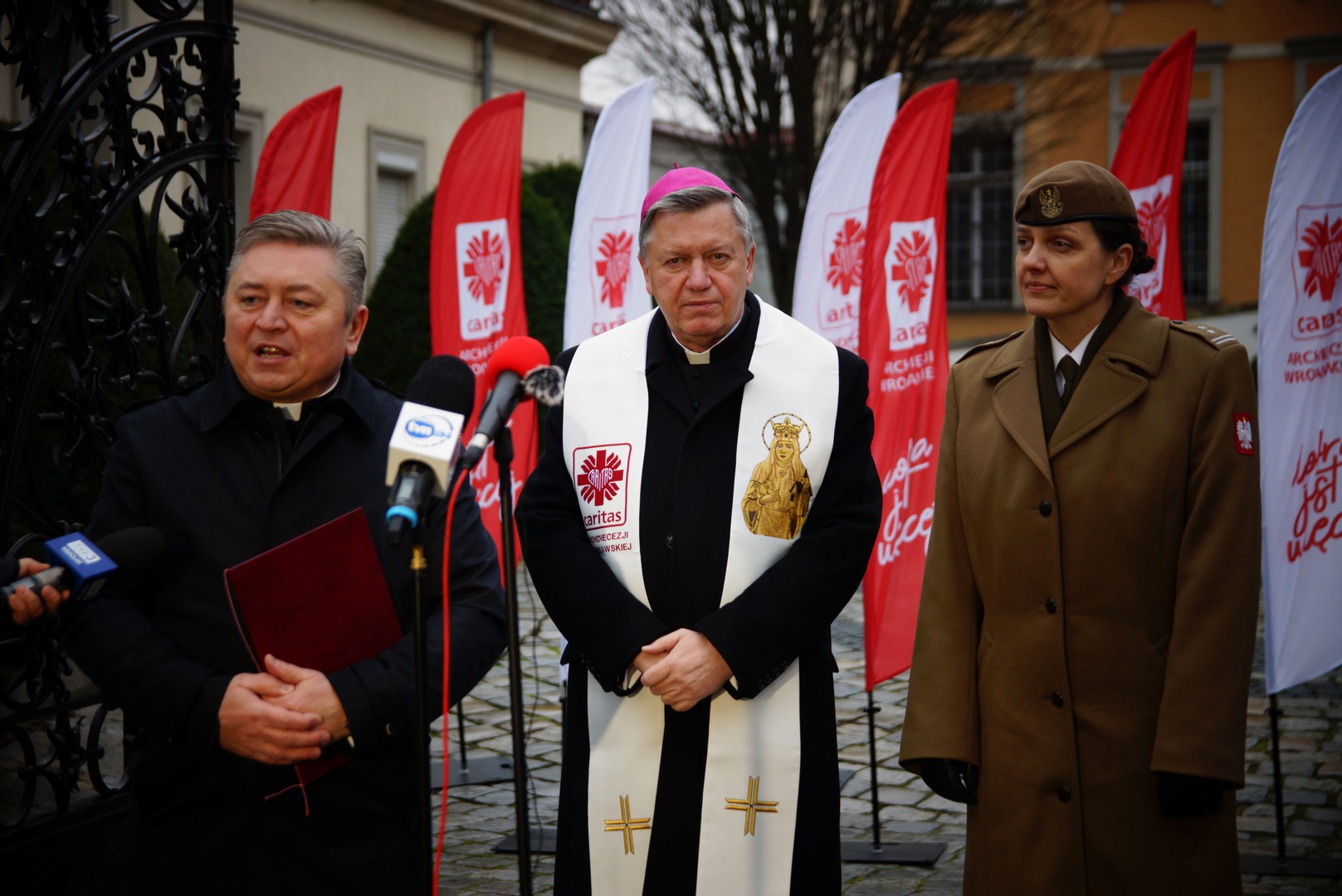 – Dziękuję władzom miasta Wrocławia oraz naszym terytorialsom, na których zawsze możemy liczyć. Szczególne słowa podziękowania kieruję do dyrektora Caritas Archidiecezji Wrocławskiej oraz wszystkich wolontariuszy i pracowników. Swoimi życzeniami obejmuję osoby starsze, chore, ale również poszkodowane w powodzi. Do nich kieruję słowa nadziei i pocieszenia. Przed nami święta szczególne. Wpatrujemy się w żłóbek i dzieciątko Jezus, które nie osądza, tylko spogląda z miłością. Życzę, byśmy wszyscy doswiadczyli Bożej miłości. Jezus przychodzi na świat po to, by nas przekonać o miłości Boga. Chcemy być drobnymi pastuszkami, którzy dary przynoszą tym najbardziej potrzebującym.