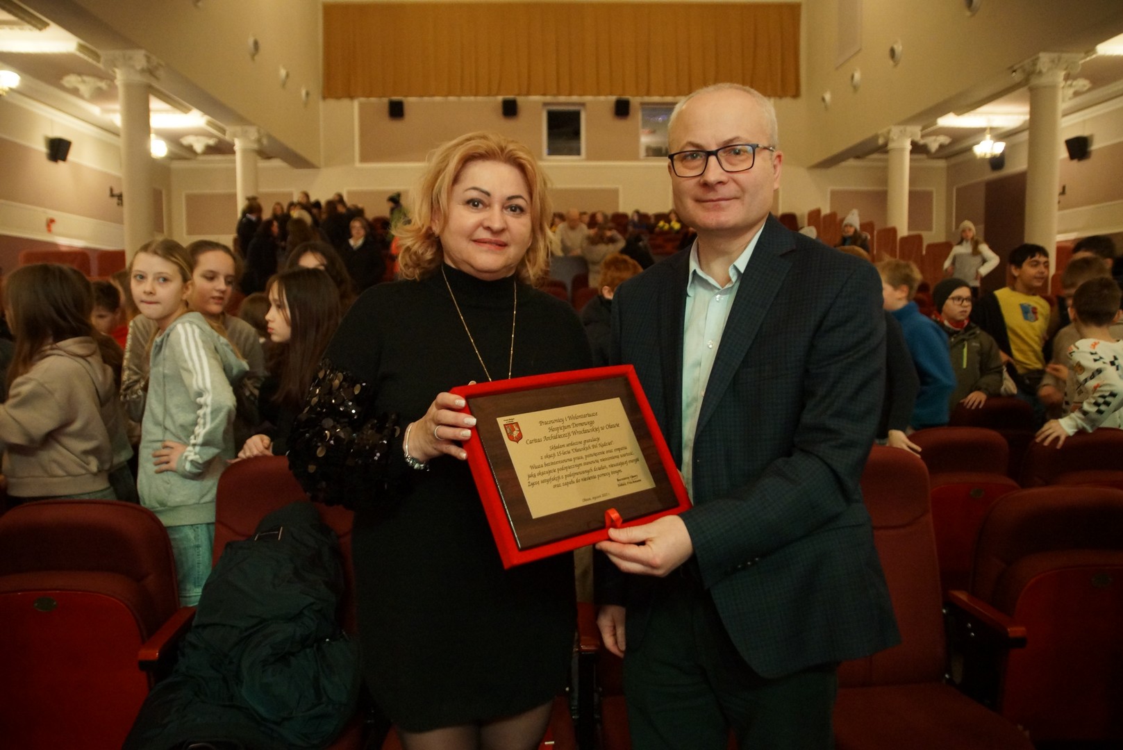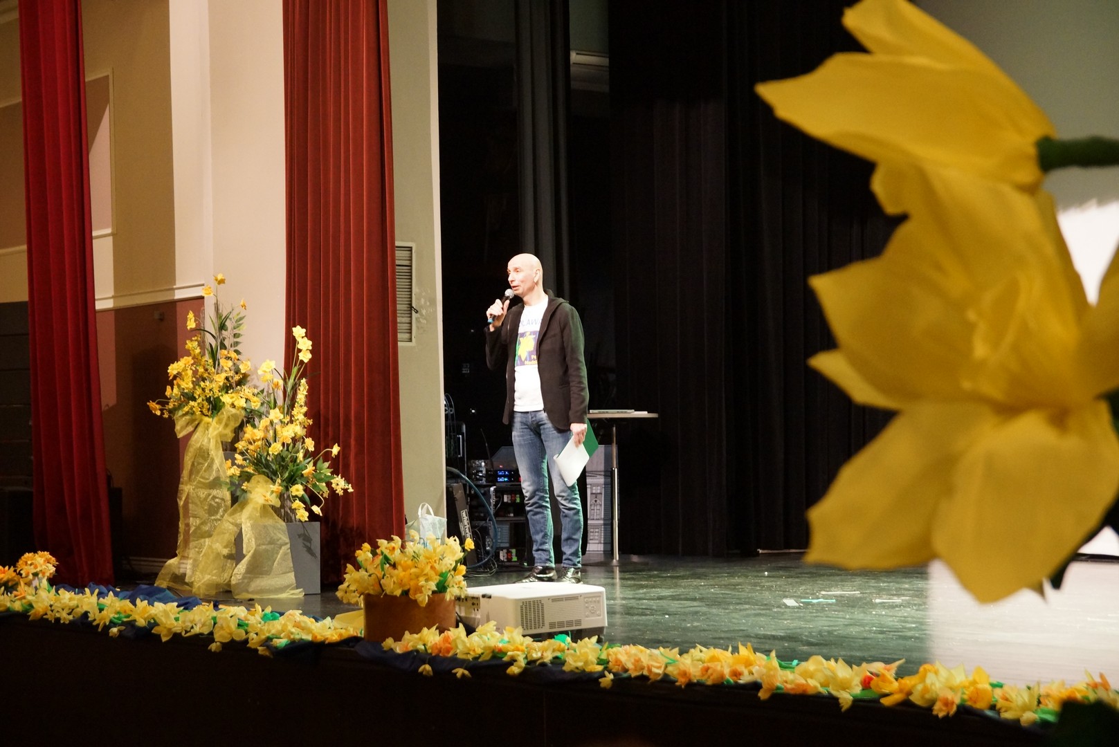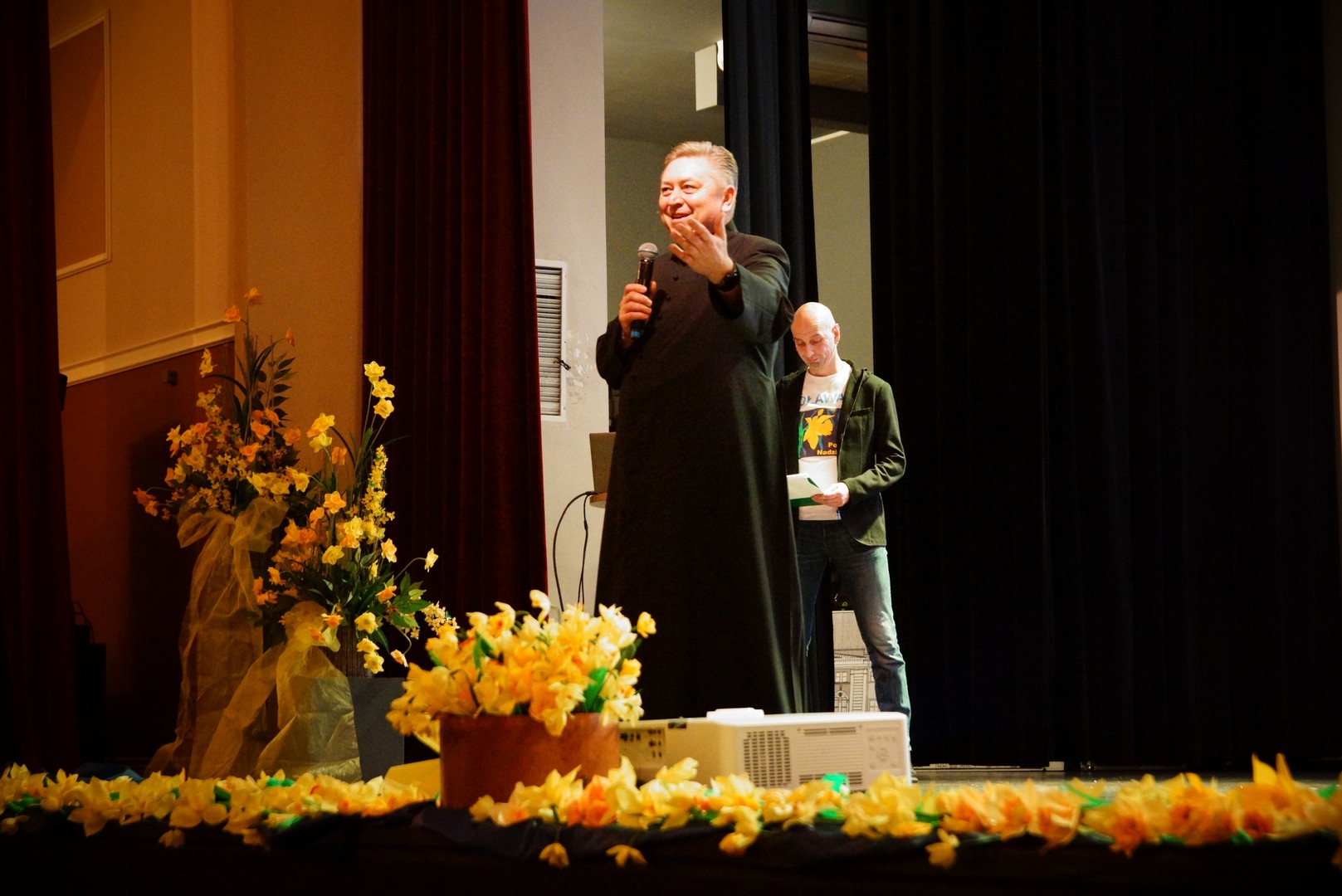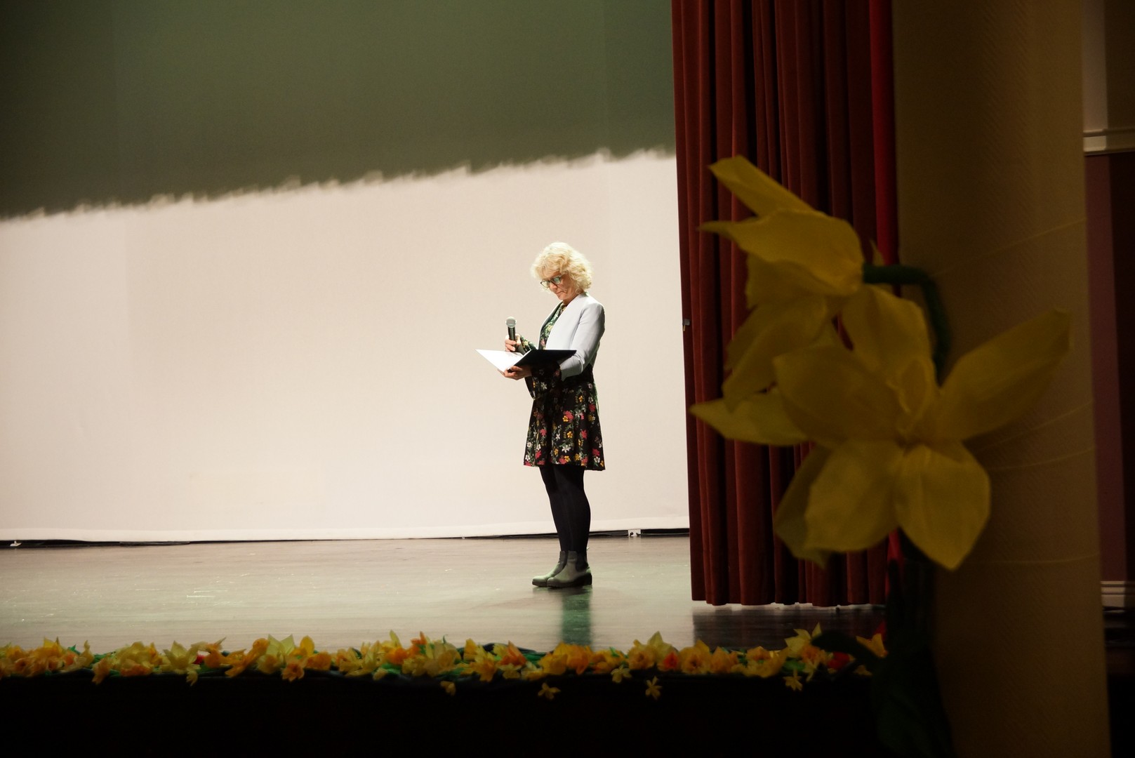 Scena oławskiego Centrum Sztuki przyozdobiona została ręcznie wykonanymi żonkilami – symbolem nadziei i troski. Jak podkreślił ks. Dariusz Amrogowicz, dyrektor wrocławskiej Caritas najpiękniejsze żonkile to te, które zebrane na widowni, które niosą radość, dobro i ciepło, widoczne w sercach młodych zaangażowanych w Pola nadziei. – Gratuluję Wam, że nie boicie się rozmawiać o cierpieniu, chorobie i śmierci – aspektach wpisanych w nasze ludzkie życie. Pokazujecie, jak wielką wartość ma dobro, które szczególnie pomaga tym, którzy przeżywają trudne chwile- mówił ksiądz Amrogowicz.