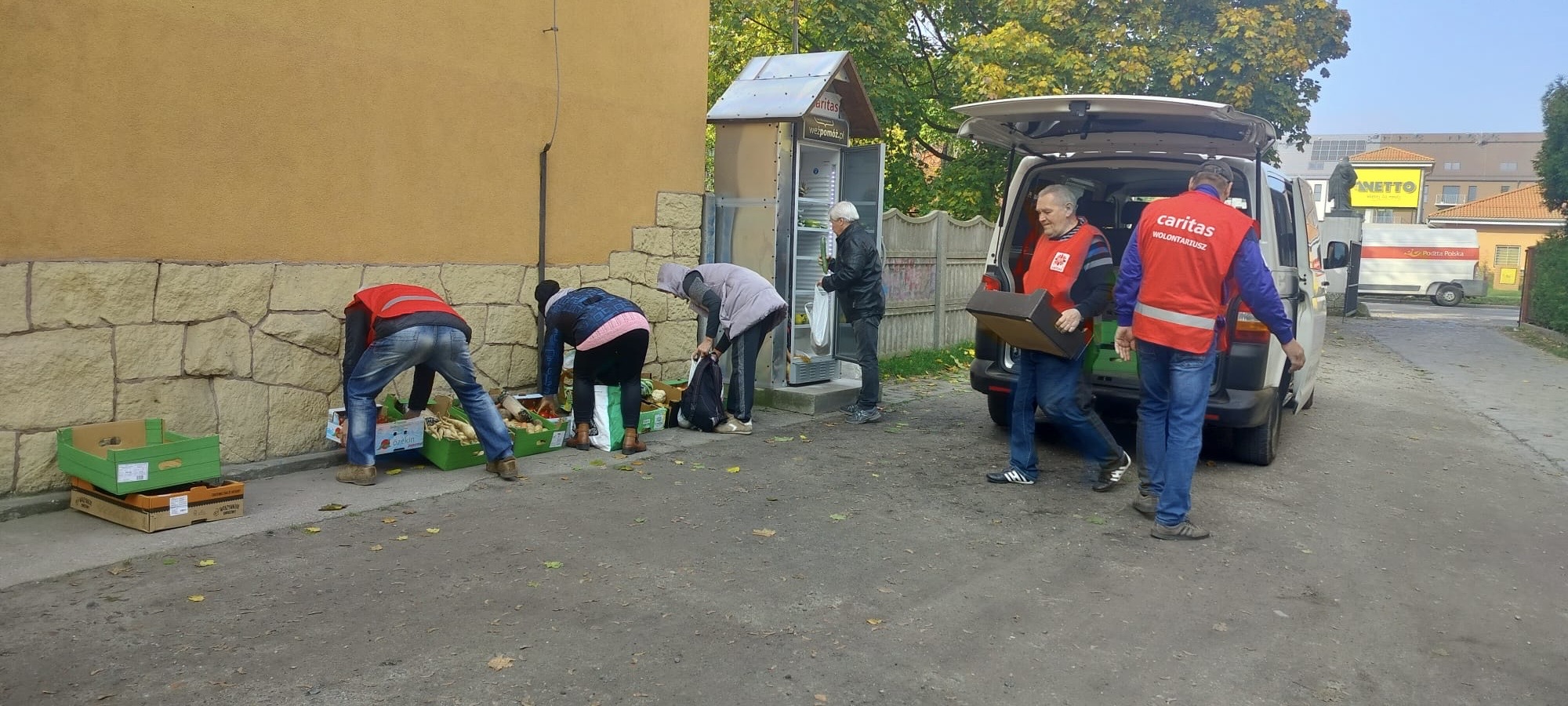 - Lodówkę społeczną, dostępną 24 godziny na dobę, w której umieszczamy żywność z Biedronki oraz dary od ludzi,