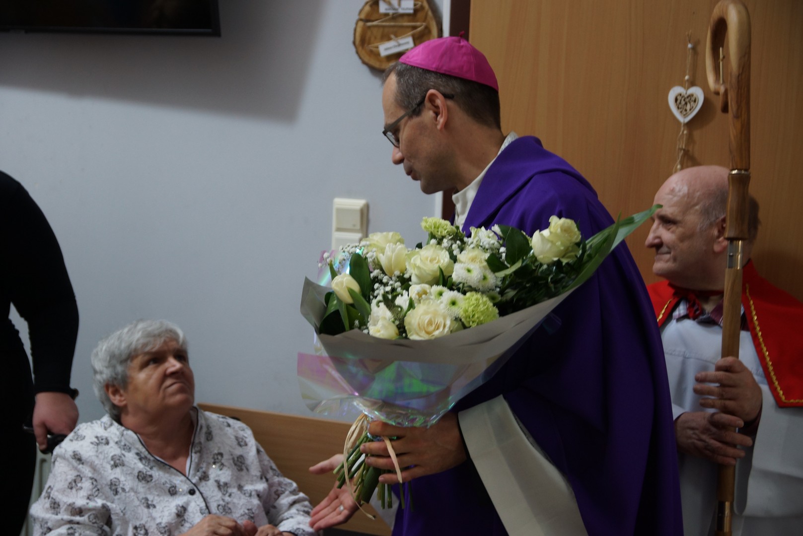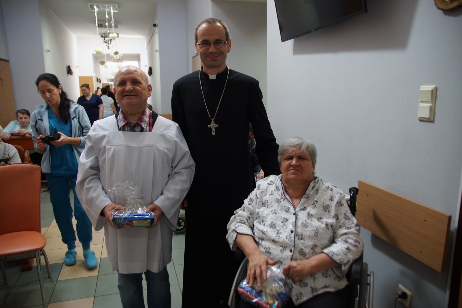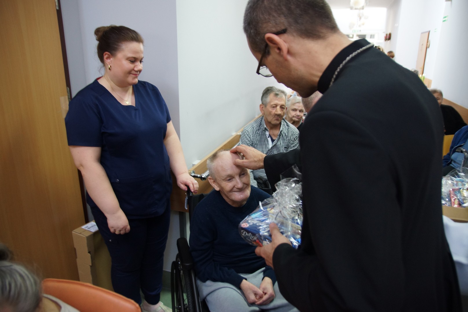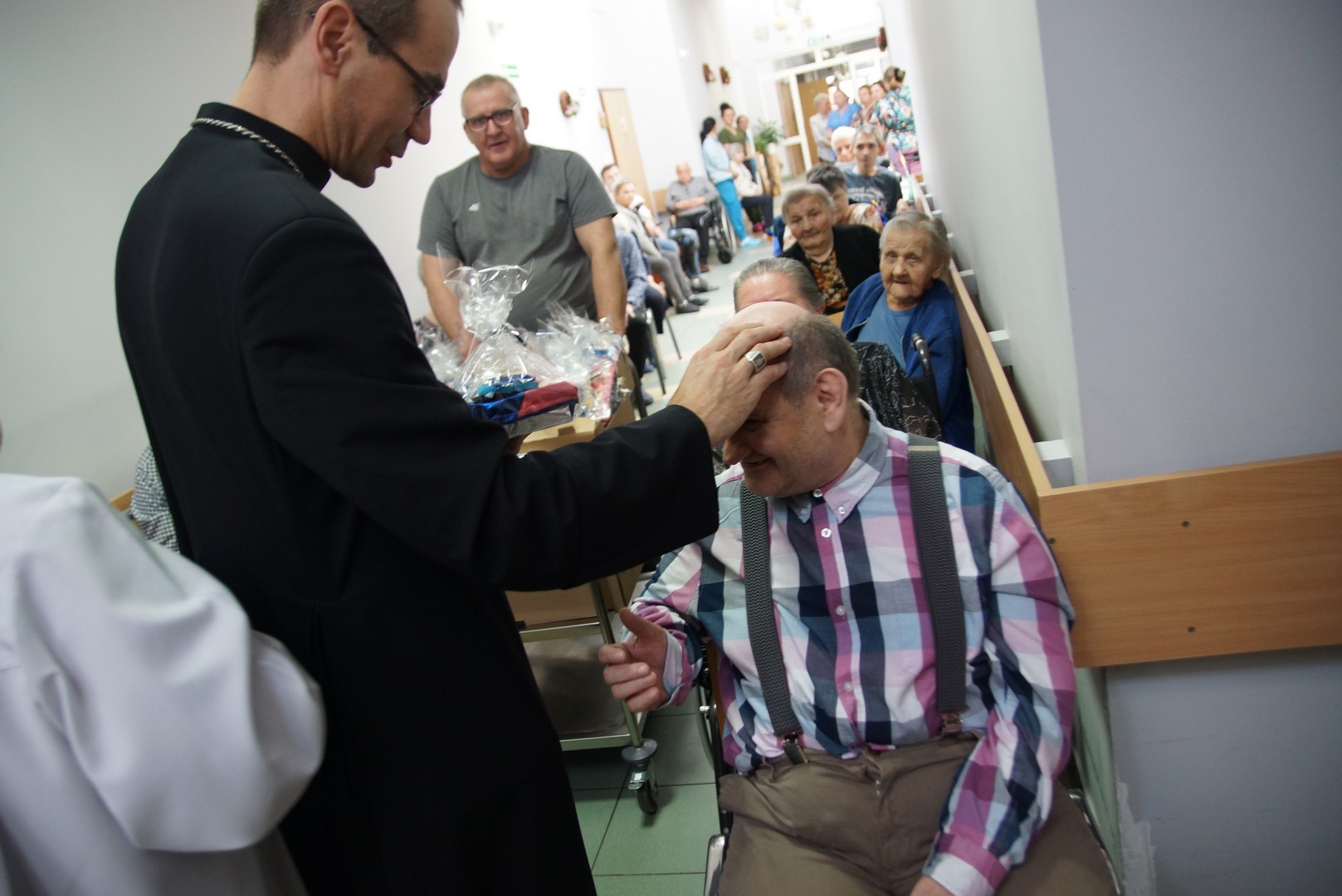 Po Eucharystii biskup indywidualnie błogosławił wszystkich obecnych oraz wręczył im słodkie upominki. Odwiedził także pokoje osób najbardziej cierpiących, które nie mogą wstać z łóżka. Wiele osób było głęboko wzruszonych tym spotkaniem. Często można było usłyszeć pełne radości i zachwytu słowa: „Jaki młody biskup!”