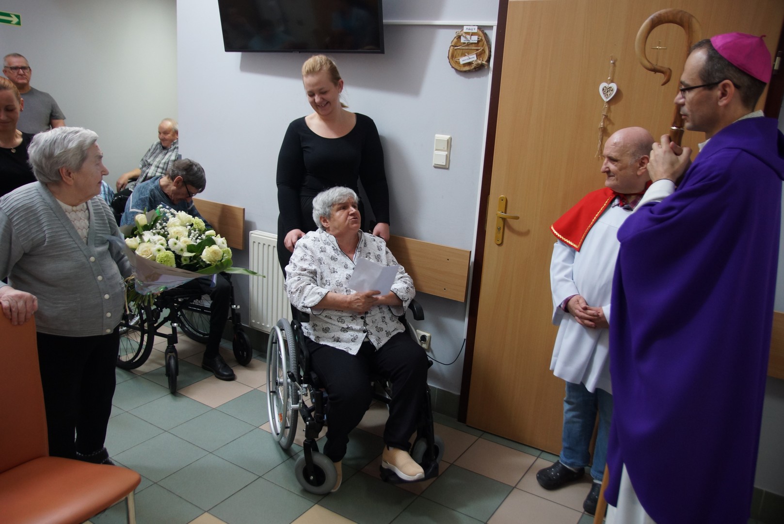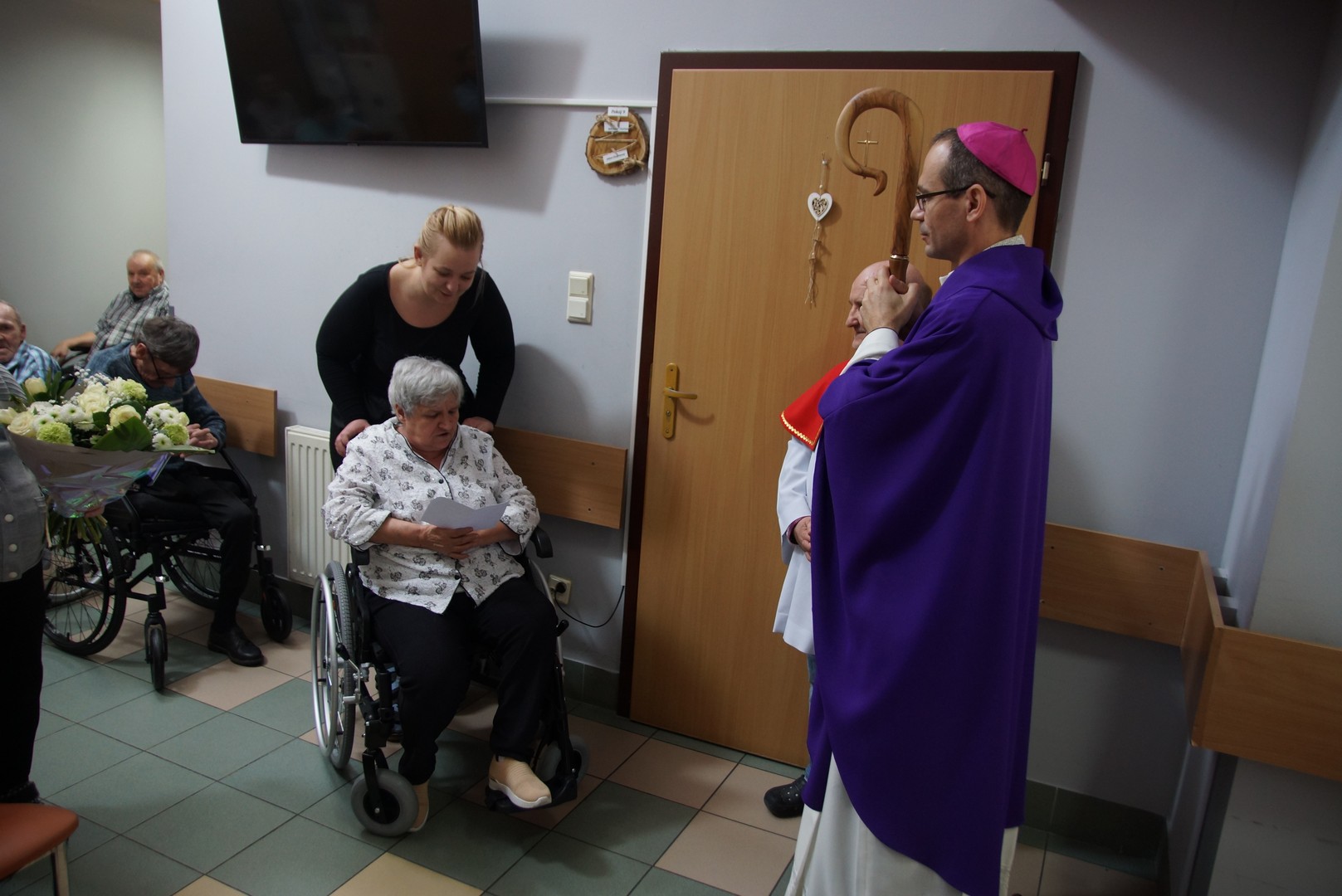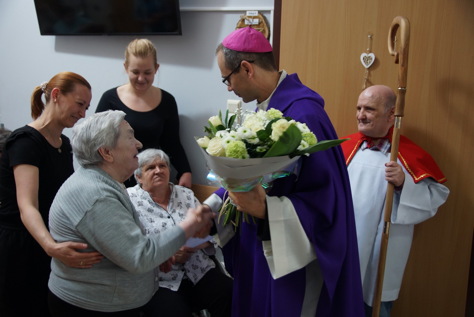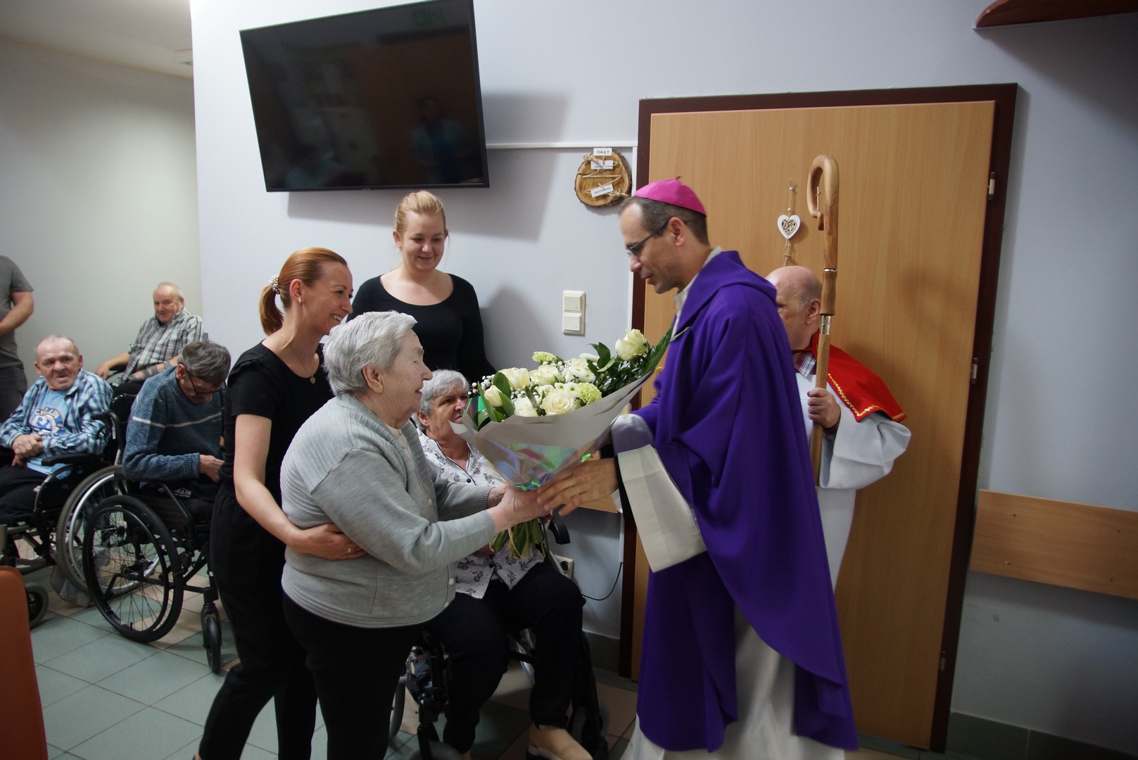 Po Eucharystii biskup indywidualnie błogosławił wszystkich obecnych oraz wręczył im słodkie upominki. Odwiedził także pokoje osób najbardziej cierpiących, które nie mogą wstać z łóżka. Wiele osób było głęboko wzruszonych tym spotkaniem. Często można było usłyszeć pełne radości i zachwytu słowa: „Jaki młody biskup!”