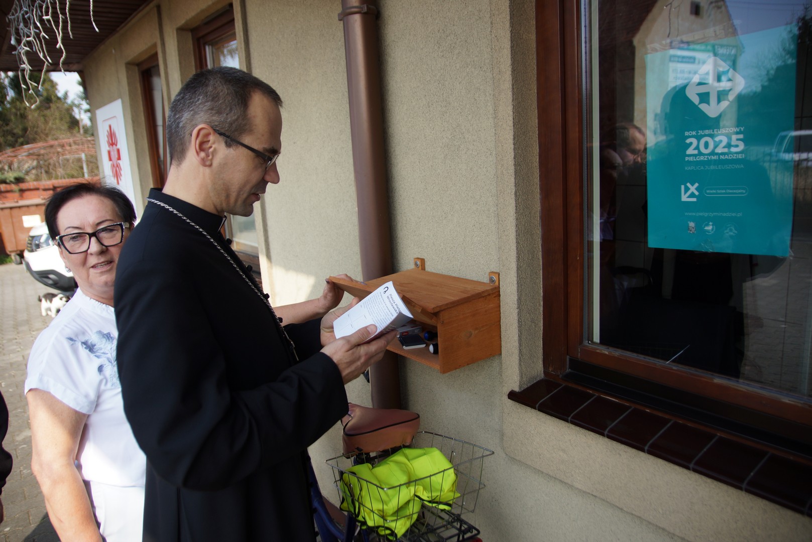 Na zakończenie bp Maciej sprawdził, jak wygląda możliwość przybicia pamiątkowej pieczątki ze Szlaku Nadziei. Dom Opieki w Małkowicach jest jednym ze Znaków Nadziei na diecezjalnym szlaku.