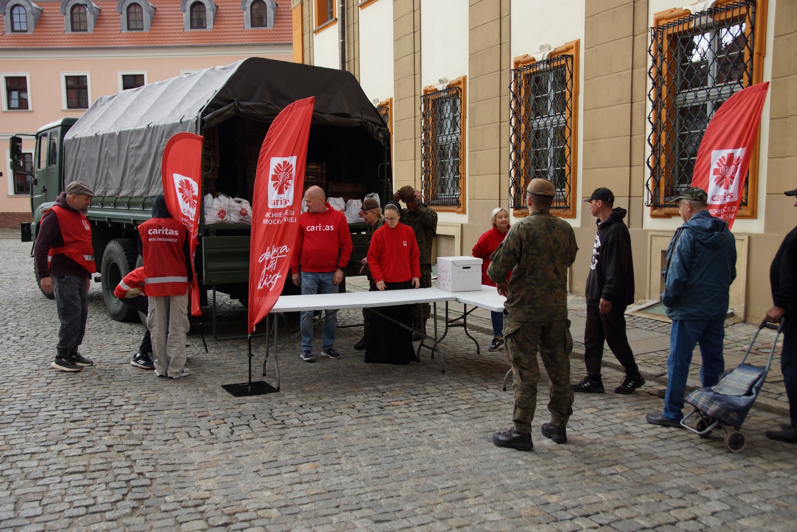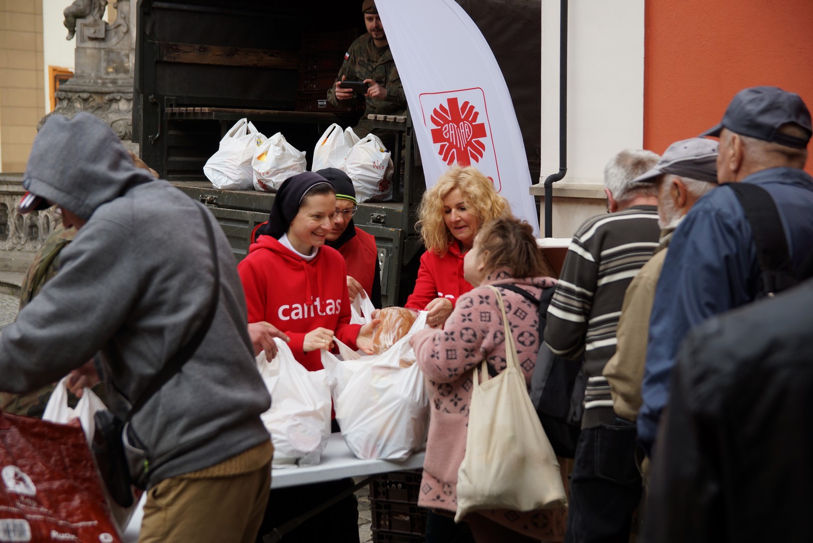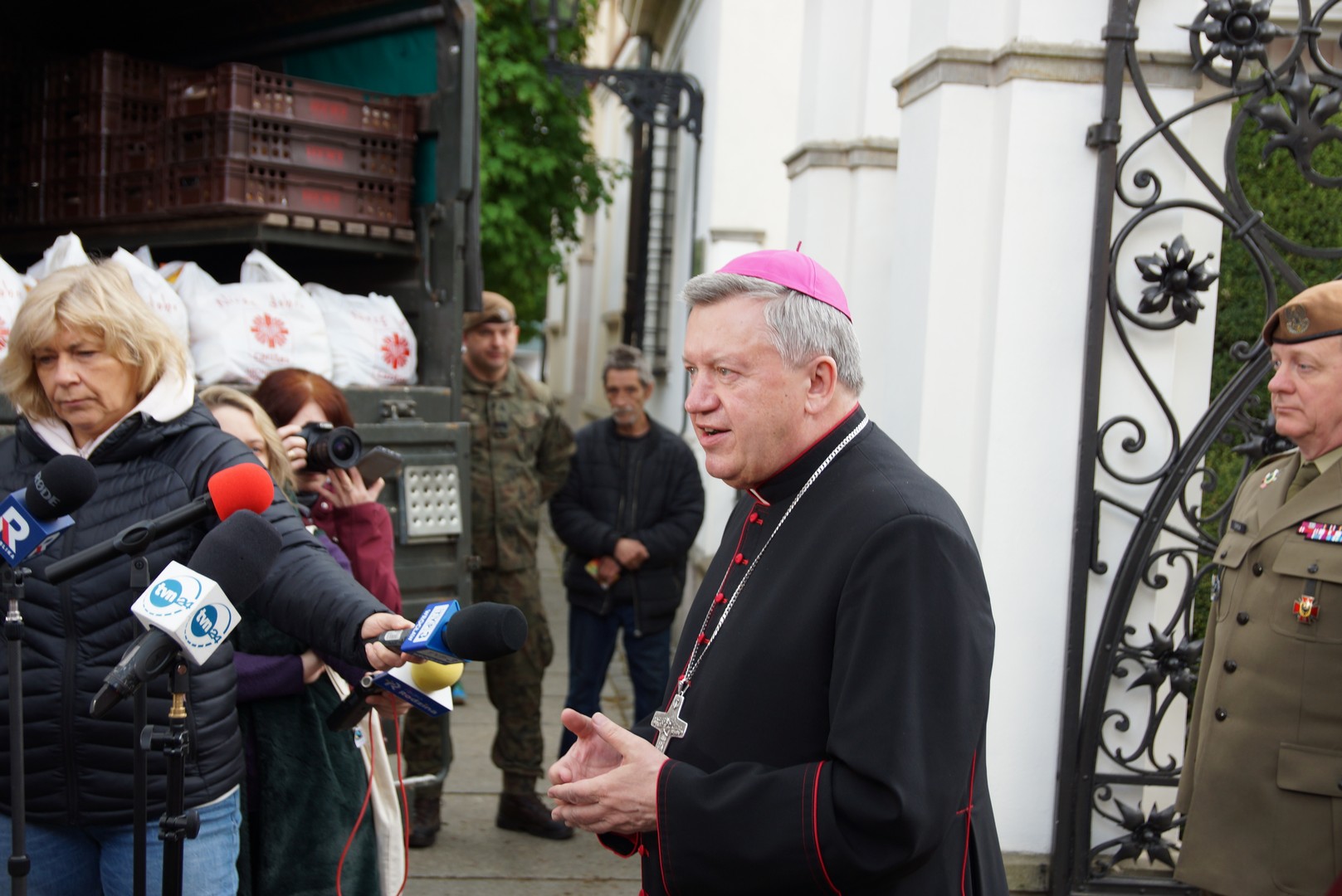 Metropolita wrocławski abp Józef Kupny pobłogosławił paczki na stoły najuboższych wrocławian, a chwilę później wolontariusze Caritas oraz żołnierze 16. Dolnośląskiej Brygady Obrony Terytorialnej rozdali je potrzebującym.