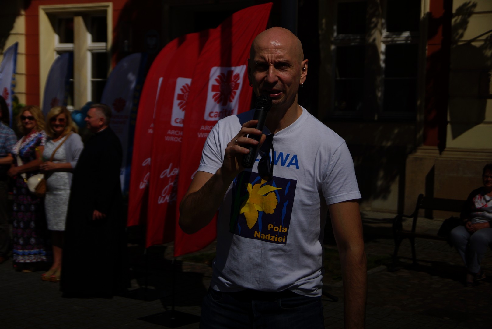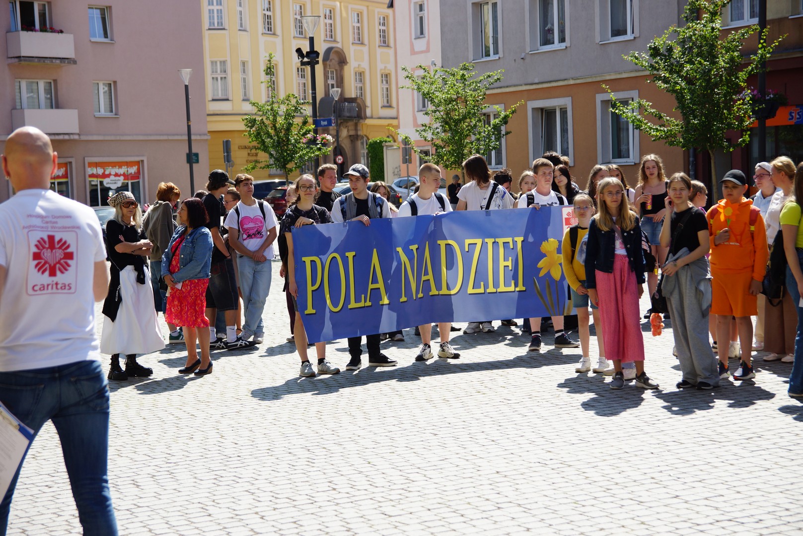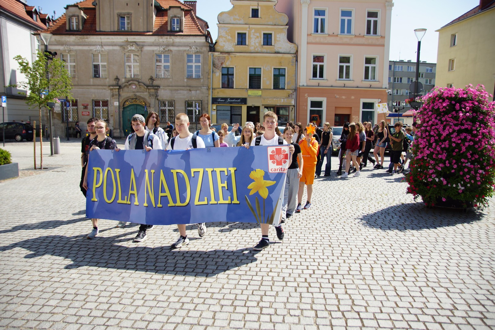 Oławski rynek wypełnił się entuzjazmem rozśpiewanych młodych ludzi. Nieśli w rękach żonkile- kwiaty nadziei. Wszystko to w ramach Marszu Żonkilowego, zorganizowanego przez Hospicjum Domowe Caritas Archidiecezji Wrocławskiej w ramach jubileuszowych, 15. już Pól Nadziei.