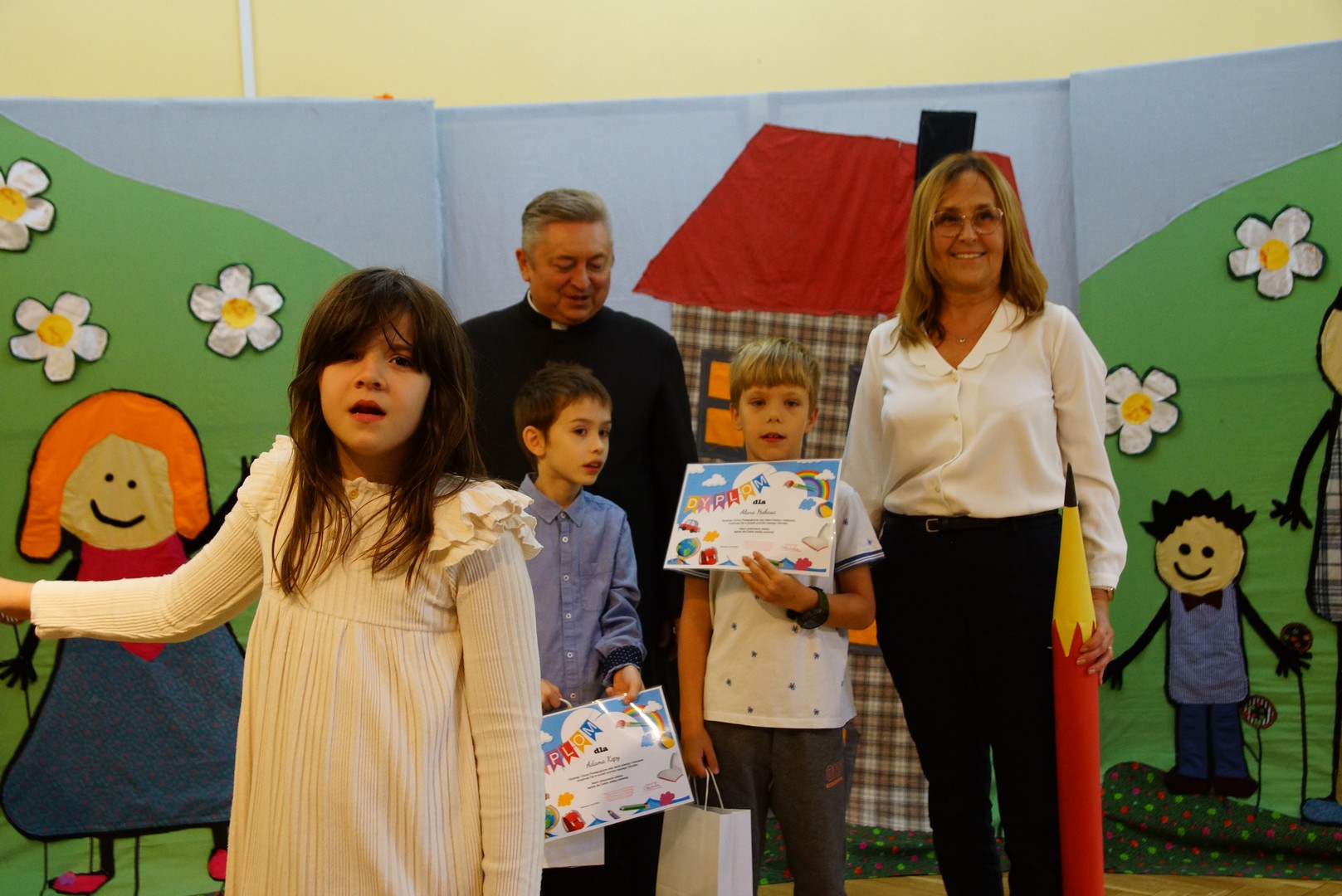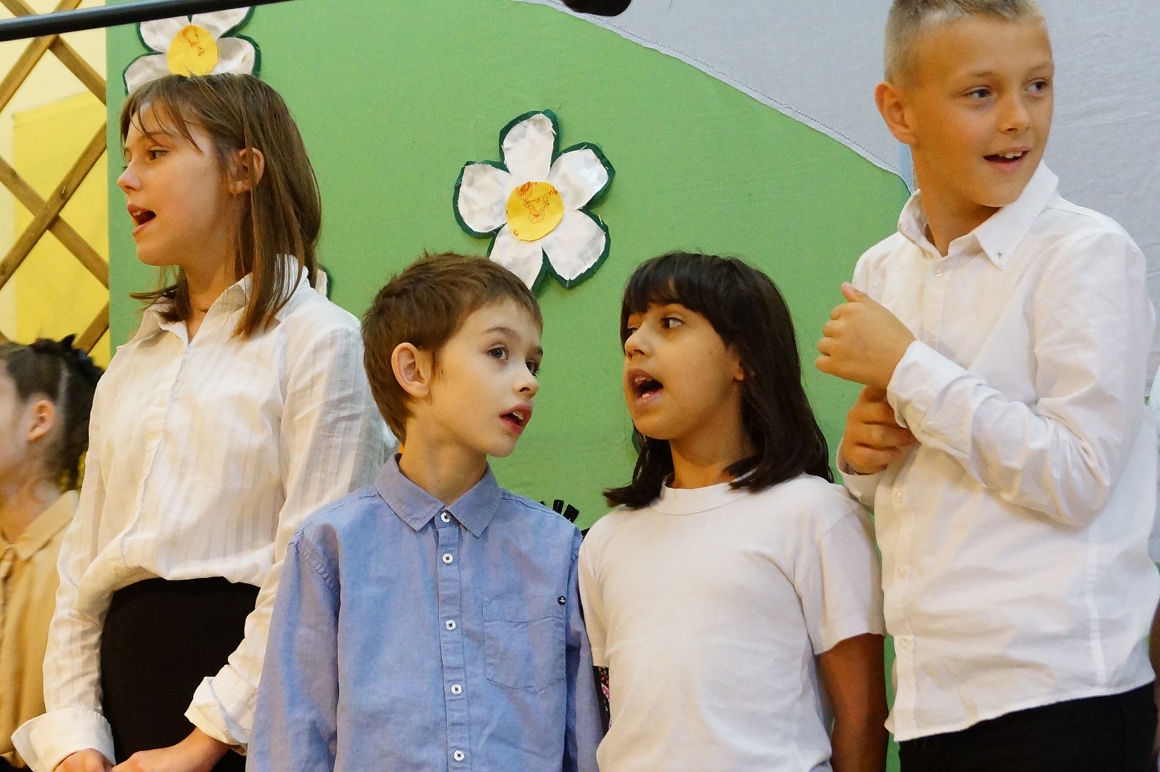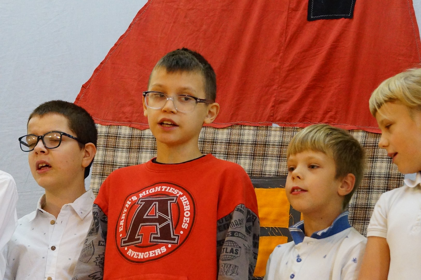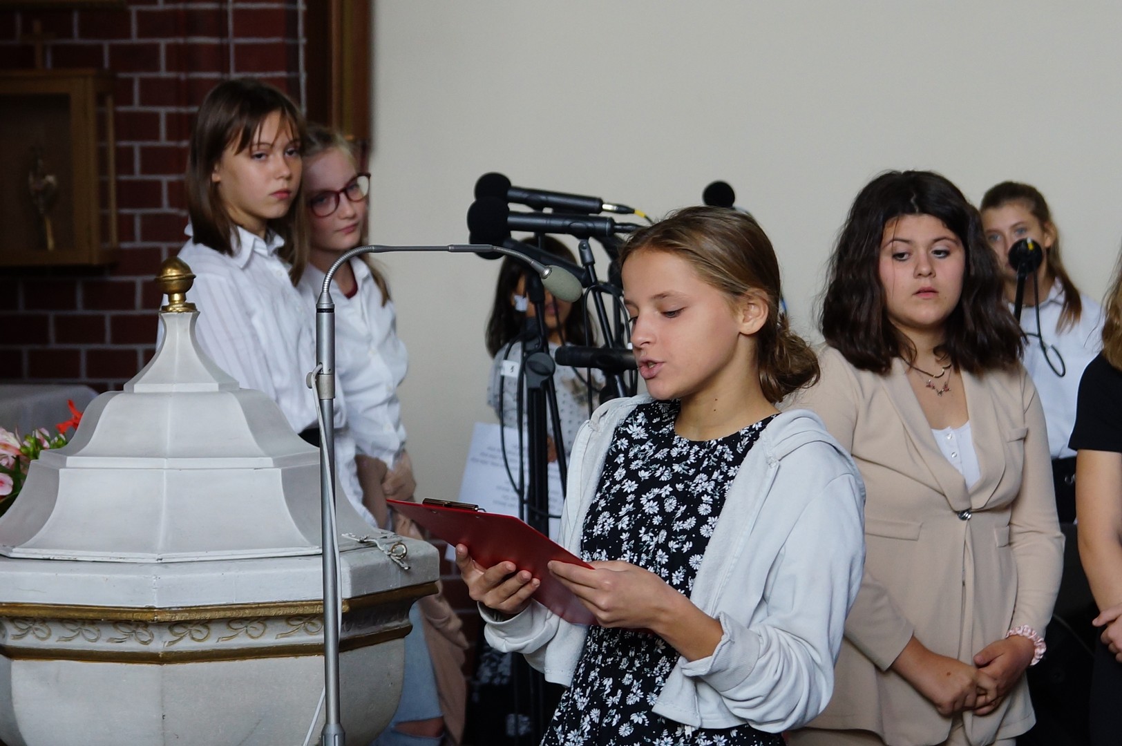Nie zabrakło też artystycznych niespodzianek – dzieci przygotowały recytacje wierszy i śpiewały piosenki. Schola szkolna zaśpiewała autorską wersję znanej melodii „Lato czeka”, zmieniając słowa tak, aby idealnie pasowały do powrotu do szkoły: o radości z ponownego spotkania, o kolegach, przygodach w szkolnych ławach i o wyzwaniach związanych z odkrywaniem wiedzy.