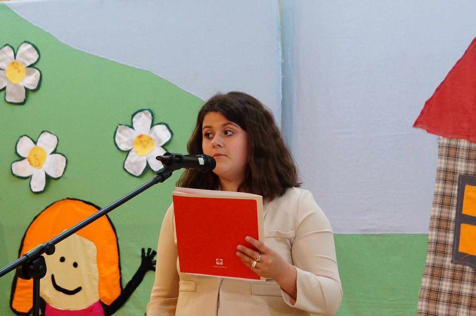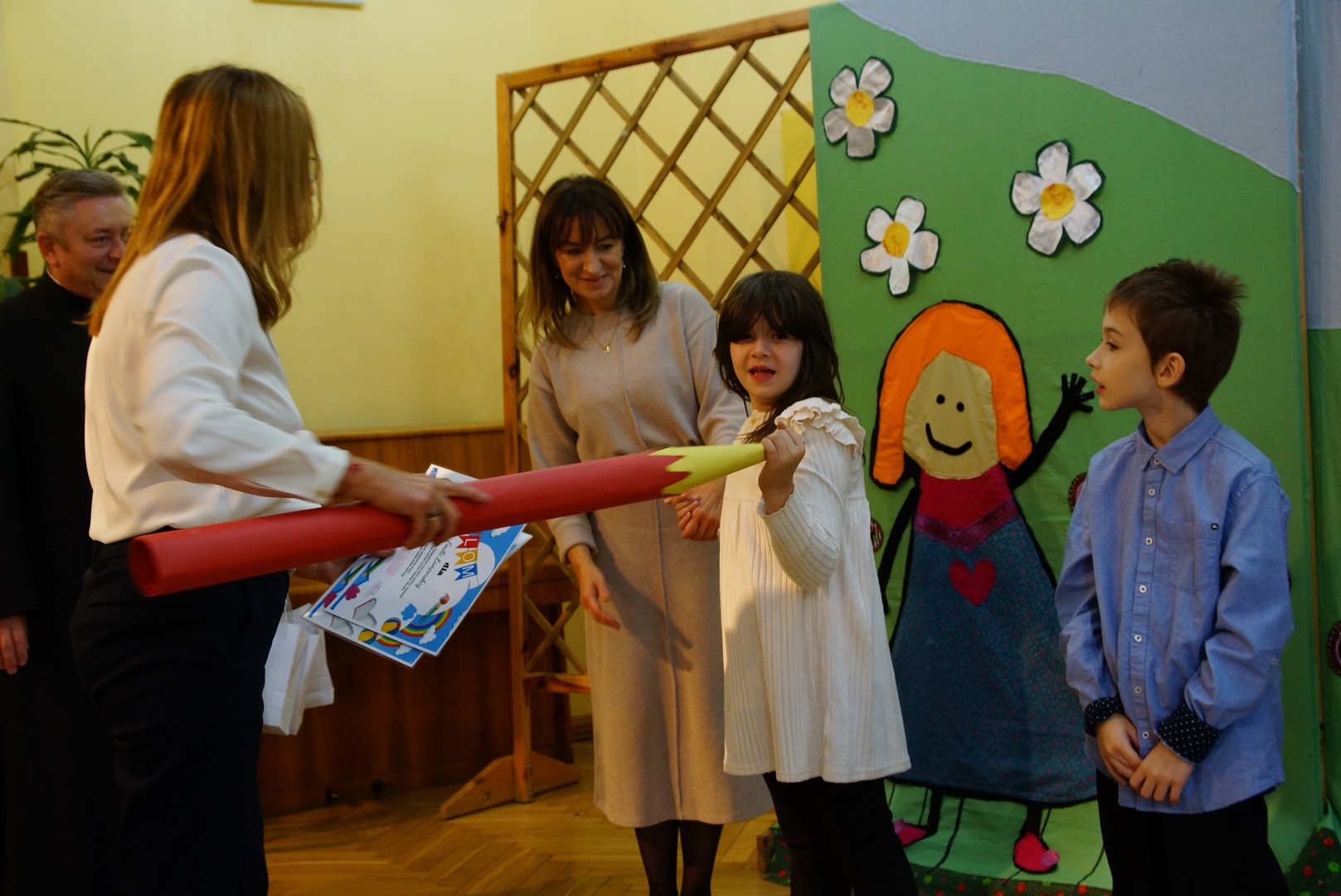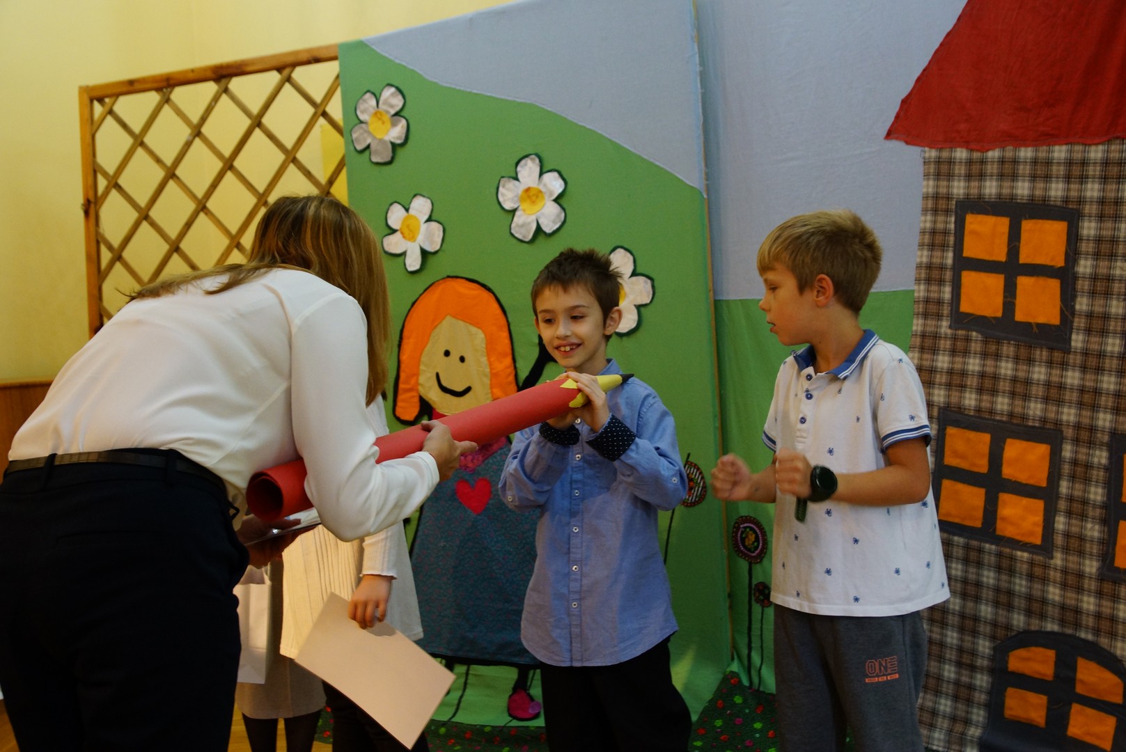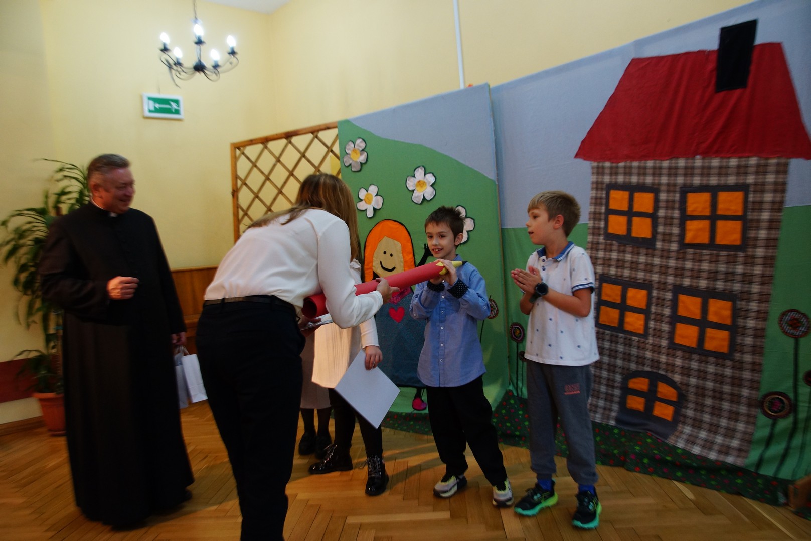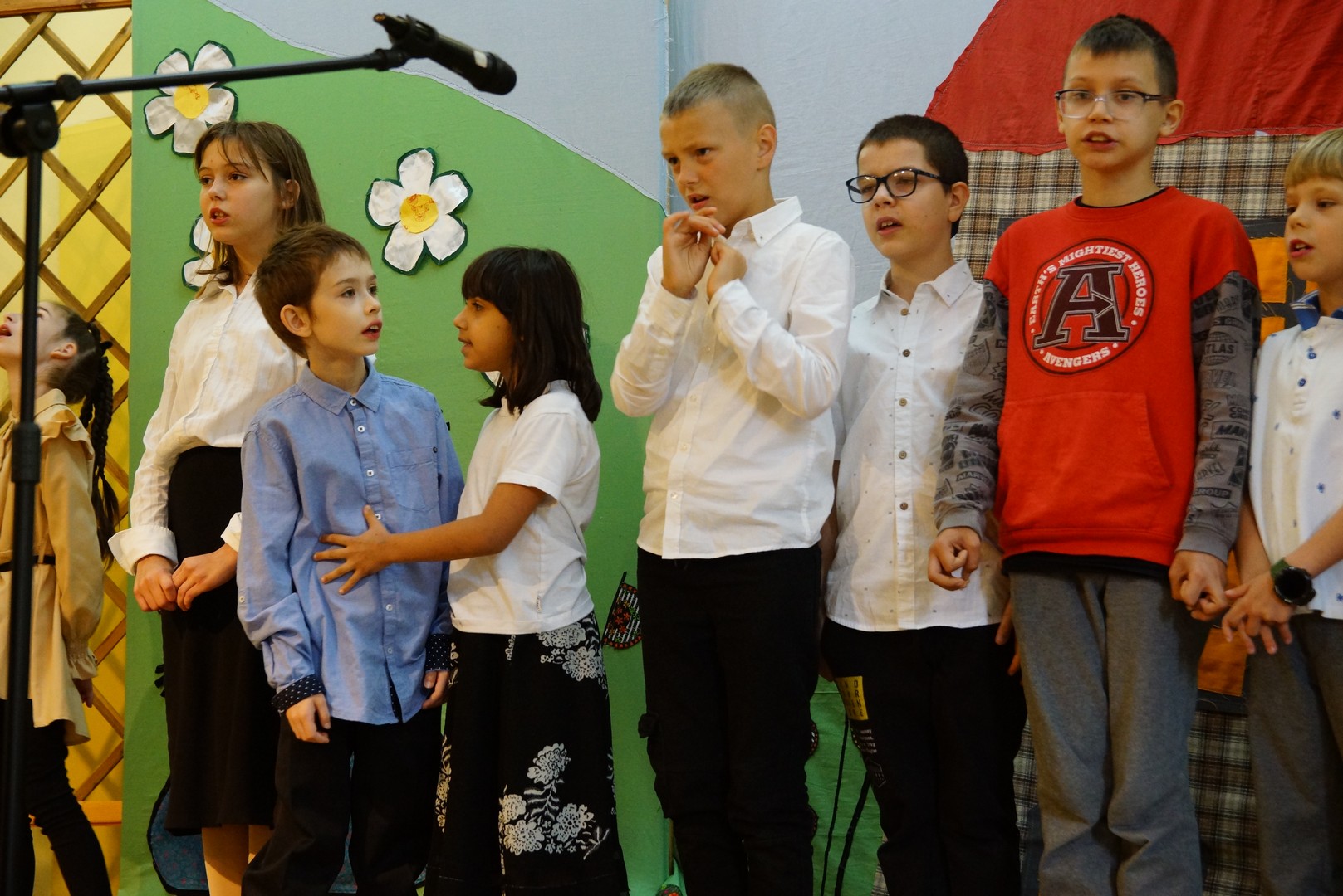 Nie zabrakło też artystycznych niespodzianek – dzieci przygotowały recytacje wierszy i śpiewały piosenki. Schola szkolna zaśpiewała autorską wersję znanej melodii „Lato czeka”, zmieniając słowa tak, aby idealnie pasowały do powrotu do szkoły: o radości z ponownego spotkania, o kolegach, przygodach w szkolnych ławach i o wyzwaniach związanych z odkrywaniem wiedzy.