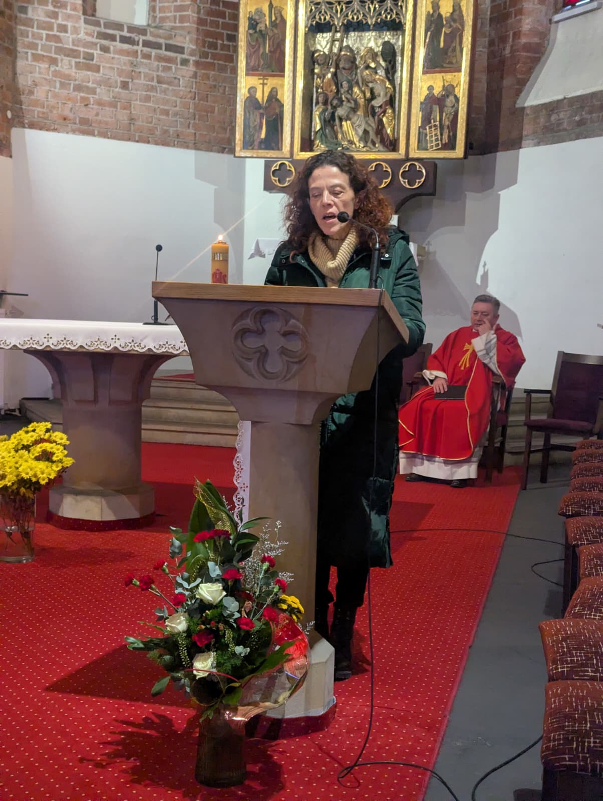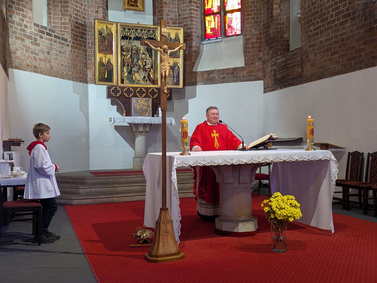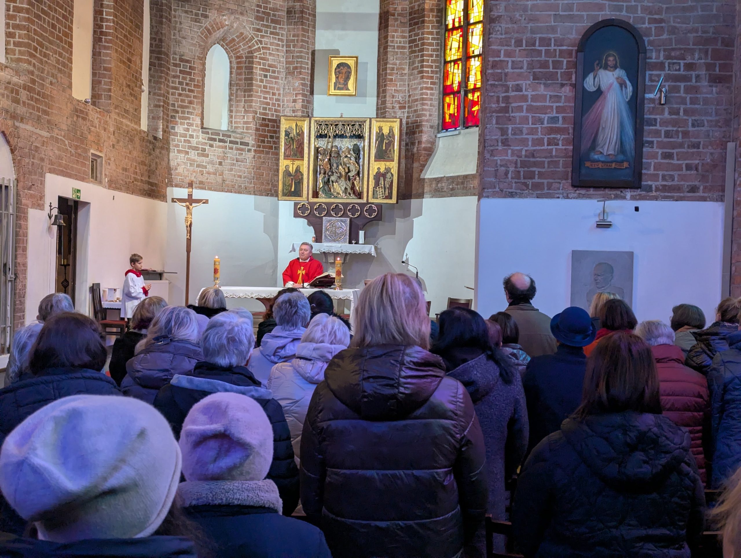 Po warsztatach uczestnicy zgromadzili się na Eucharystii w kościele św. Apostołów Piotra i Pawła pod przewodnictwem ks. Dariusza Amrogowicza, dyrektora Caritas Archidiecezji Wrocławskiej. W homilii ksiądz dyrektor przywołał postać króla Antiocha, który, dowiedziawszy się o niepowodzeniach i upadku swoich planów, tak bardzo się przeraził, że padł na łoże i rozchorował się ze smutku: