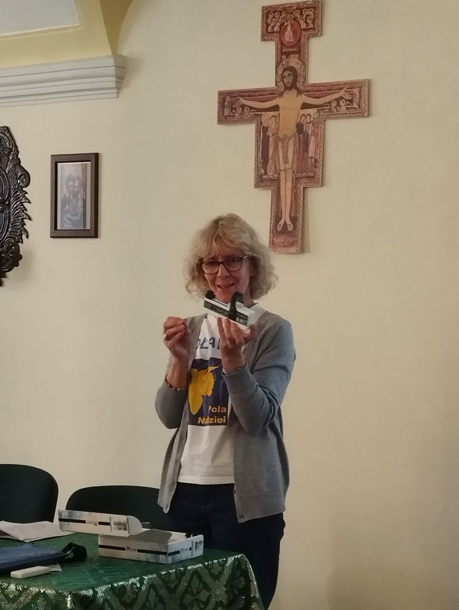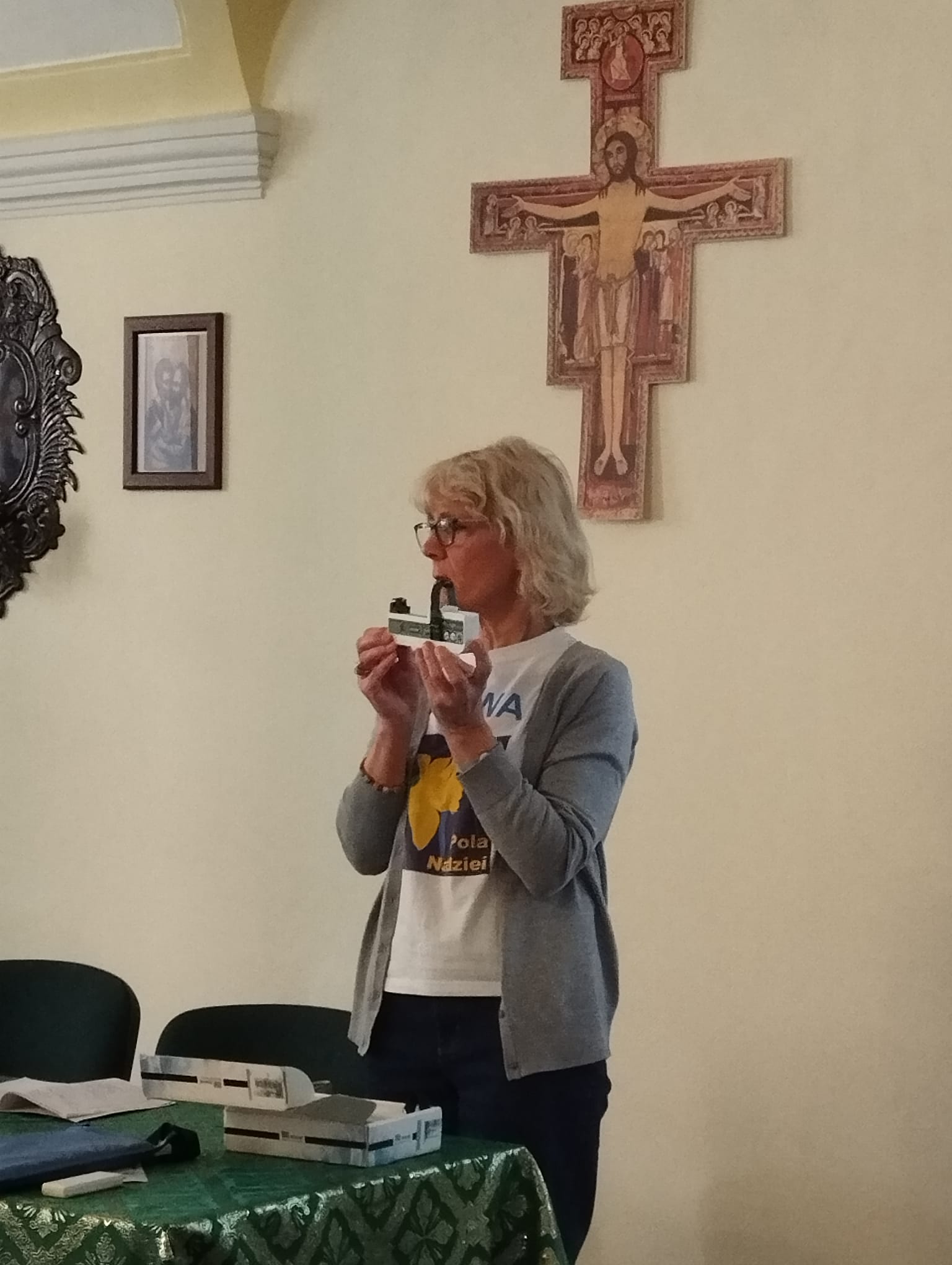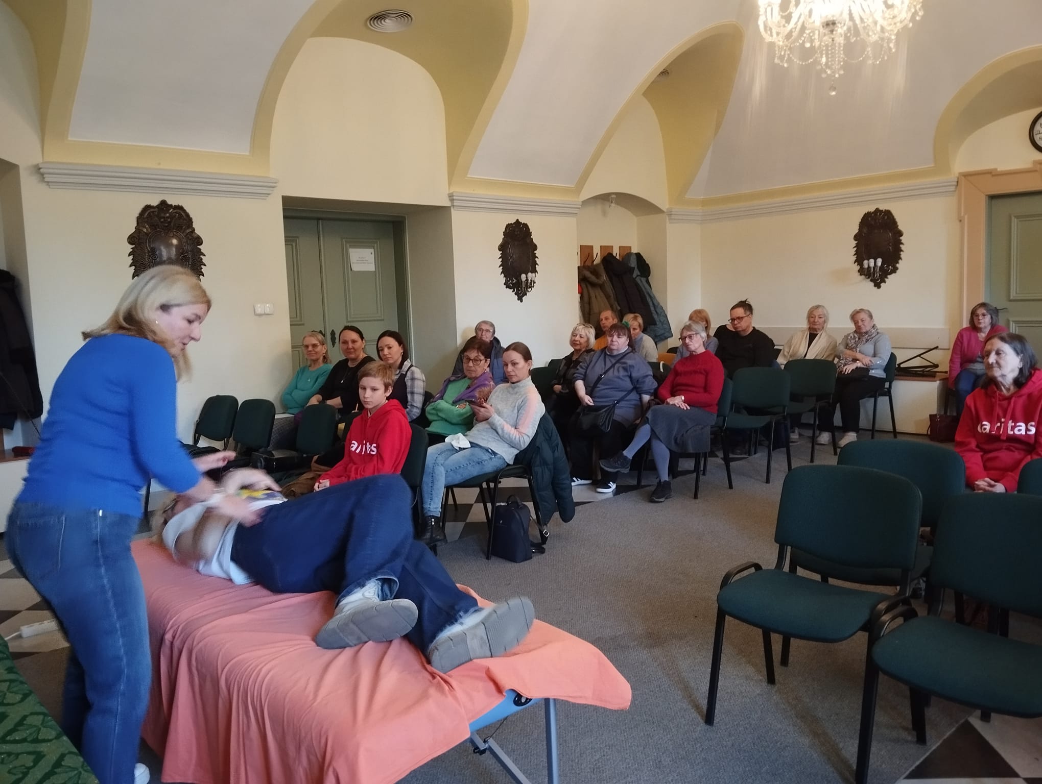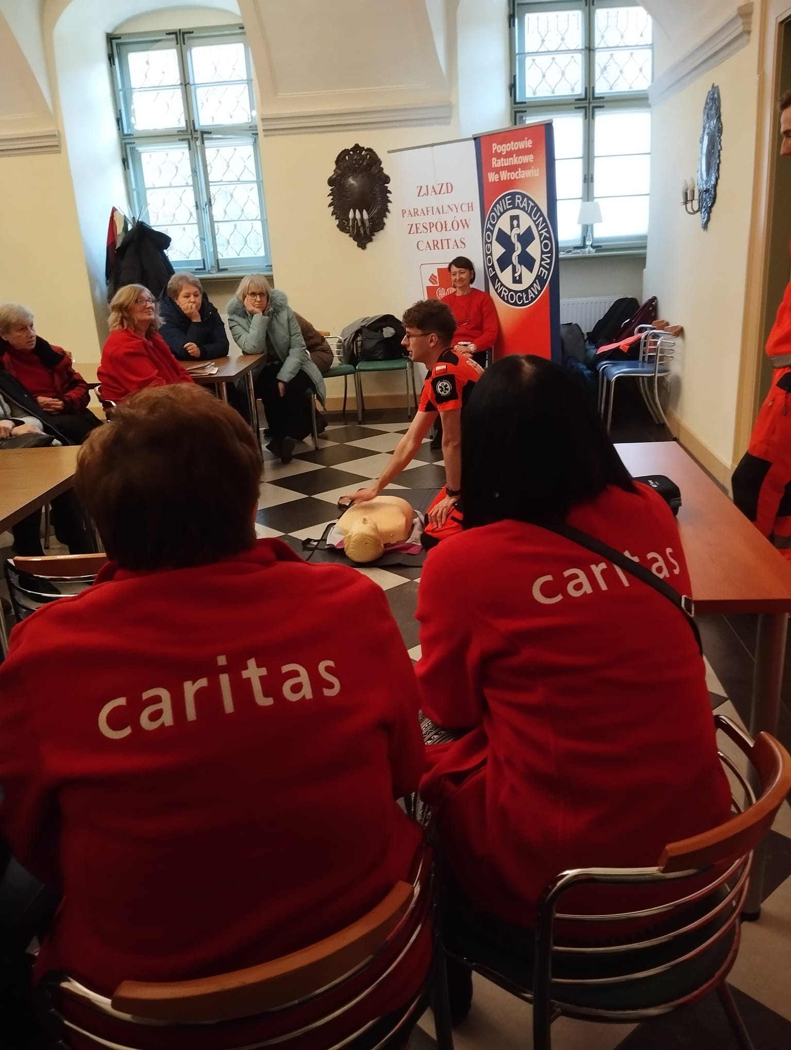 – Dzisiejsze zajęcia miały jeden cel: pokazać, że pierwsza pomoc naprawdę jest w zasięgu każdego z nas.- podkreśla s. Magdalena Stachura CDC, koordynująca PZC we wrocławskiej Caritas – Wielu z nas obawia się, że użycie AED będzie trudne albo że możemy zrobić coś źle. Tymczasem to urządzenie jest stworzone właśnie po to, by prowadziło nas krok po kroku. Po włączeniu samo mówi, co mamy zrobić. Wystarczy działać spokojnie, słuchać poleceń i mieć odwagę pomóc. Chcę podkreślić: każdy z nas może uratować życie. Nie trzeba być ratownikiem — wystarczy wiedzieć, jak rozpocząć RKO i jak użyć AED. Dzisiejszy warsztat miał dodać odwagi, przełamać lęk i pokazać, że w sytuacji zagrożenia nie jesteśmy bezradni— podkreśla siostra.