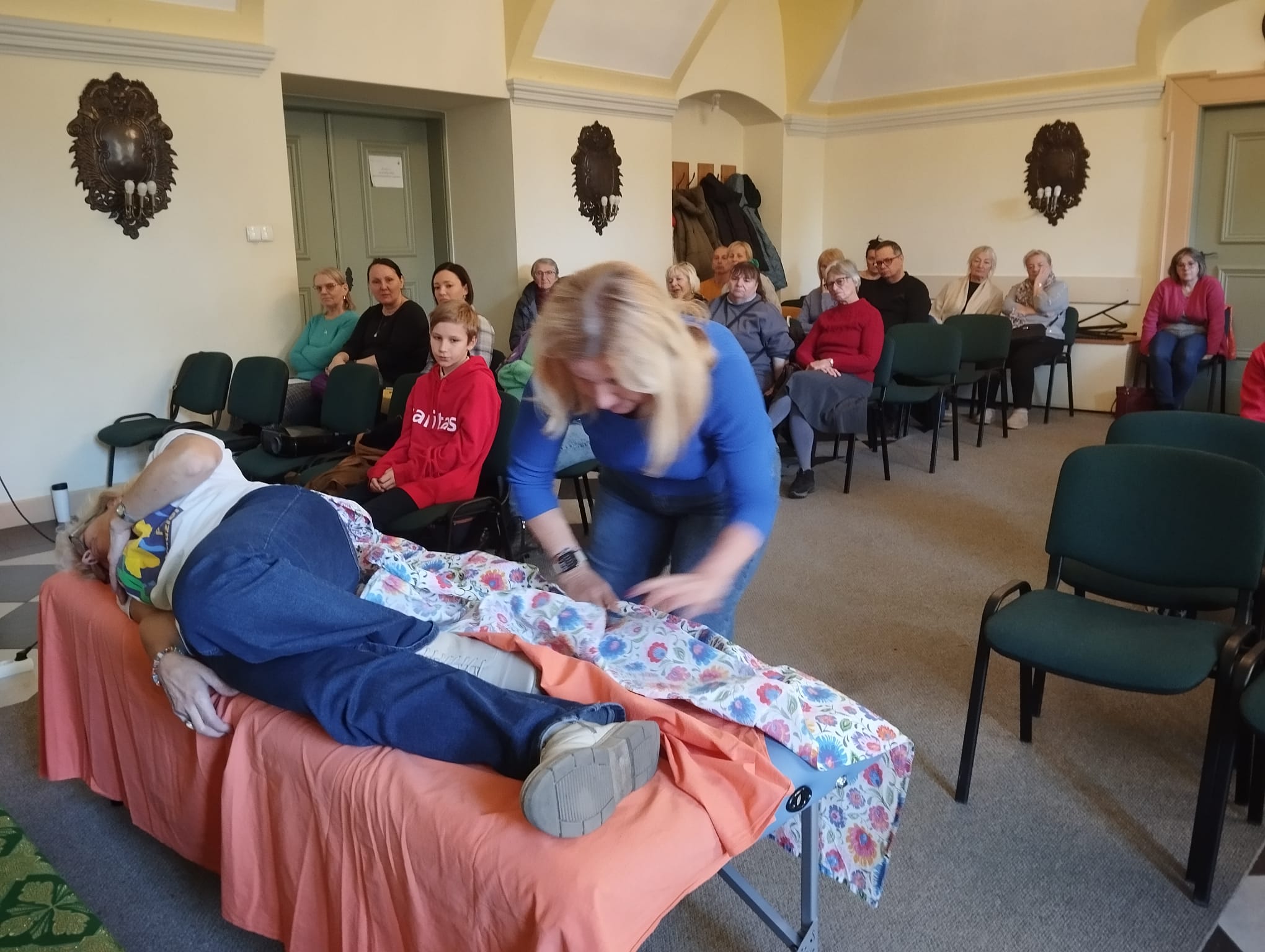 • „Z troską o drugiego człowieka” – praktyczne zajęcia z opieki nad osobą chorą w domu, prowadzone przez pracowników i wolontariuszy Hospicjum Domowego Caritas z Oławy.