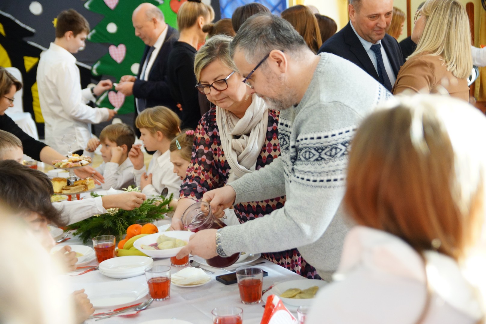 Przy wigilijnym stole nie zabrakło tradycyjnych potraw, dekoracji i ciepłej atmosfery.
