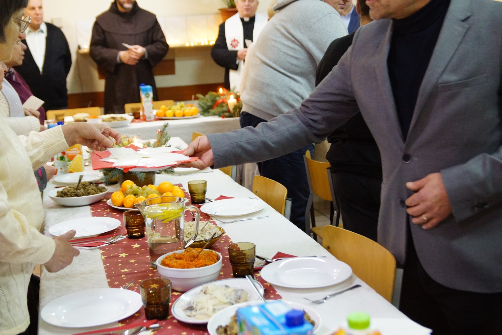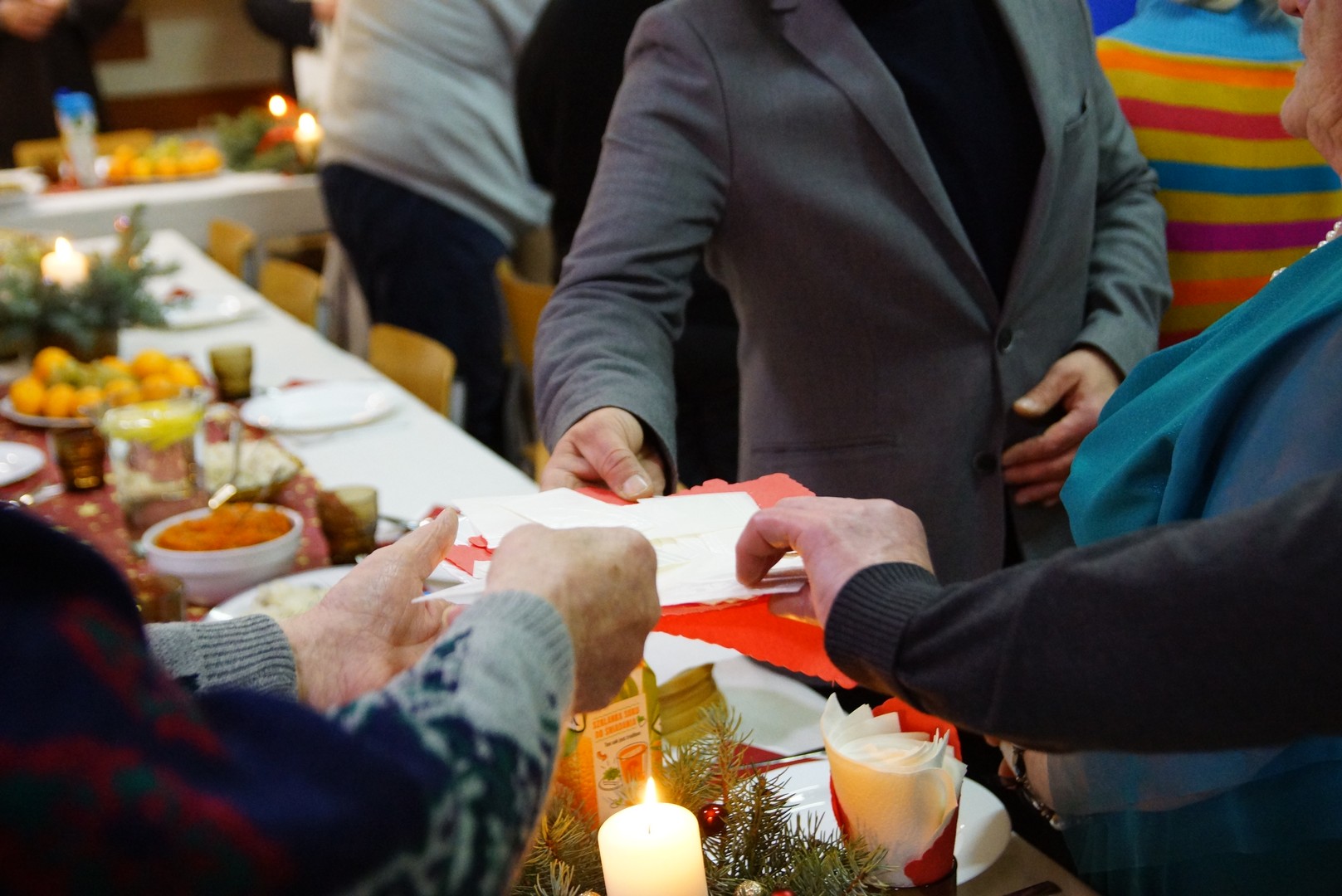 W dawnej jadłodajni Caritas przy ul. Słowiańskiej we Wrocławiu odbyło się kameralne spotkanie wigilijne dla osób doświadczających samotności i ubóstwa. We współpracy z parafią pw. Opieki św. Józefa, gdzie od lat prężnie działa Parafialny Zespół Caritas, oraz dzięki zaangażowaniu ojca proboszcza, udało się zaprosić 25 osób – głównie seniorów oraz samotne mamy z dziećmi. Wszyscy zasiedli razem przy wigilijnym stole.