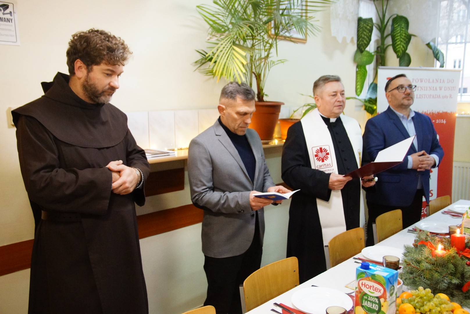 Serdeczne życzenia uczestnikom złożył dyrektor Caritas Archidiecezji Wrocławskiej, ks. Dariusz Amrogowicz. Podkreślił, że Boże Narodzenie jest znakiem obecności Boga właśnie w ubóstwie i ludzkiej kruchości. – Pan Jezus przychodzi do tego, co trudne, do doświadczenia biedy, smutku i samotności. Chce być z nami i nieść światło nadziei, życzliwości i dobroci – mówił. Zwrócił także uwagę, że Boża obecność objawia się poprzez konkretnych ludzi: pracowników, wolontariuszy i darczyńców, dzięki którym możliwe jest wspólne przeżywanie świąt.