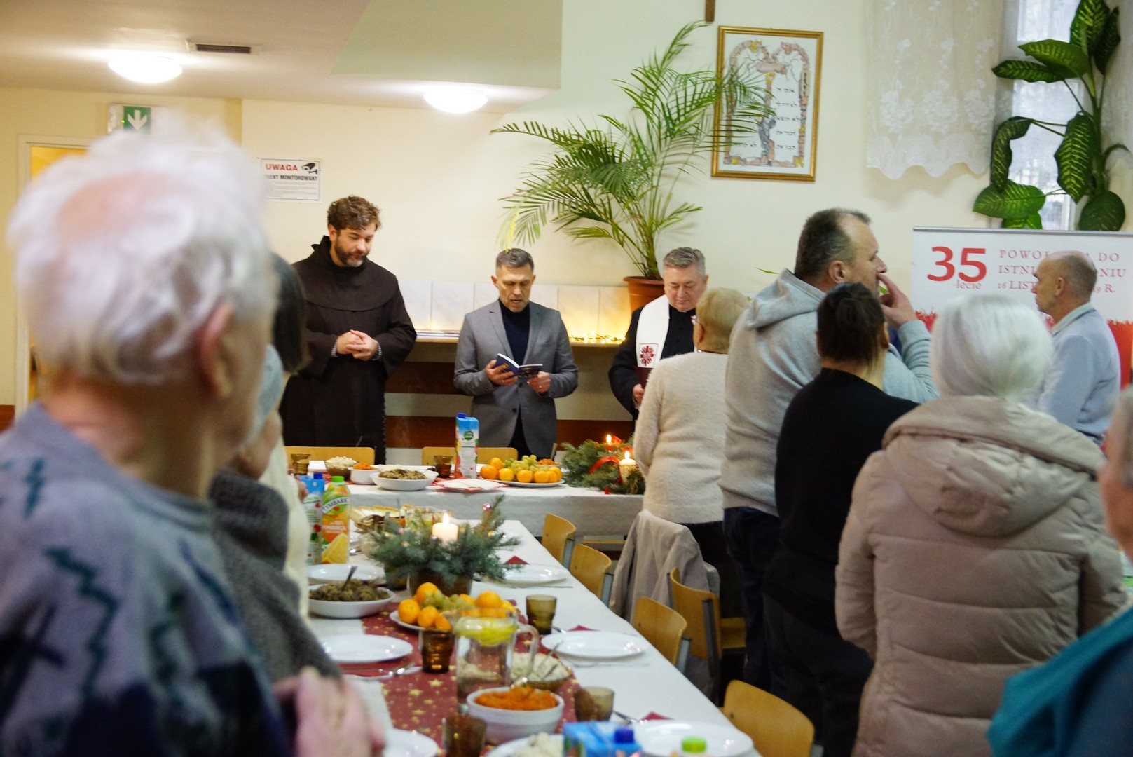 Nie zabrakło wspólnej modlitwy, kolędowania oraz łamania się opłatkiem. Spotkanie stało się przestrzenią bliskości, rozmowy i wzajemnej obecności. Wśród gości obecni byli o. Krzysztof, proboszcz parafii oraz prezes Wrocławskiego Banku Żywności.