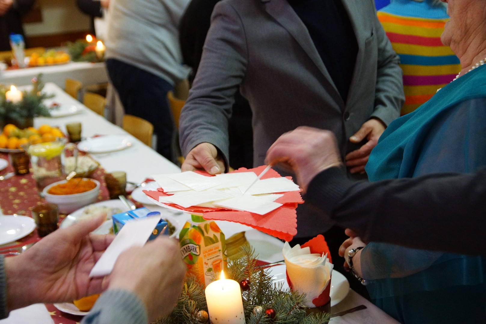 W dawnej jadłodajni Caritas przy ul. Słowiańskiej we Wrocławiu odbyło się kameralne spotkanie wigilijne dla osób doświadczających samotności i ubóstwa. We współpracy z parafią pw. Opieki św. Józefa, gdzie od lat prężnie działa Parafialny Zespół Caritas, oraz dzięki zaangażowaniu ojca proboszcza, udało się zaprosić 25 osób – głównie seniorów oraz samotne mamy z dziećmi. Wszyscy zasiedli razem przy wigilijnym stole.
