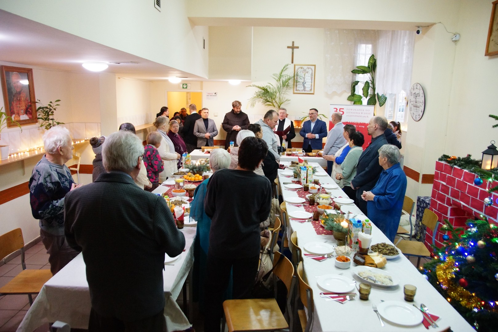 Serdeczne życzenia uczestnikom złożył dyrektor Caritas Archidiecezji Wrocławskiej, ks. Dariusz Amrogowicz. Podkreślił, że Boże Narodzenie jest znakiem obecności Boga właśnie w ubóstwie i ludzkiej kruchości. – Pan Jezus przychodzi do tego, co trudne, do doświadczenia biedy, smutku i samotności. Chce być z nami i nieść światło nadziei, życzliwości i dobroci – mówił. Zwrócił także uwagę, że Boża obecność objawia się poprzez konkretnych ludzi: pracowników, wolontariuszy i darczyńców, dzięki którym możliwe jest wspólne przeżywanie świąt.