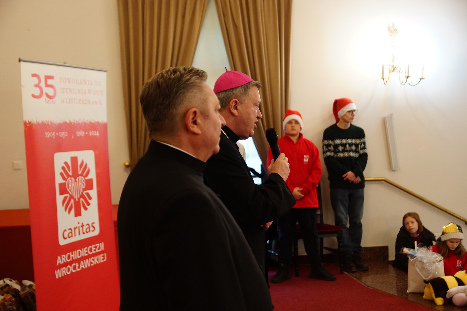– Chciałbym, żebyście pamiętali, że cały Kościół wrocławski, że Caritas, myślimy o was. Wiem, że jesteście przygotowani, żeby odebrać te prezenty, ale chciałem was zapytać, czy jesteście przygotowani na przyjście Jezusa do waszego serca? To będzie najlepszy prezent dla Tego, który urodzi się w stajence – zachęcał zebrane w auli PWT dzieci ks. abp Józef Kupny.