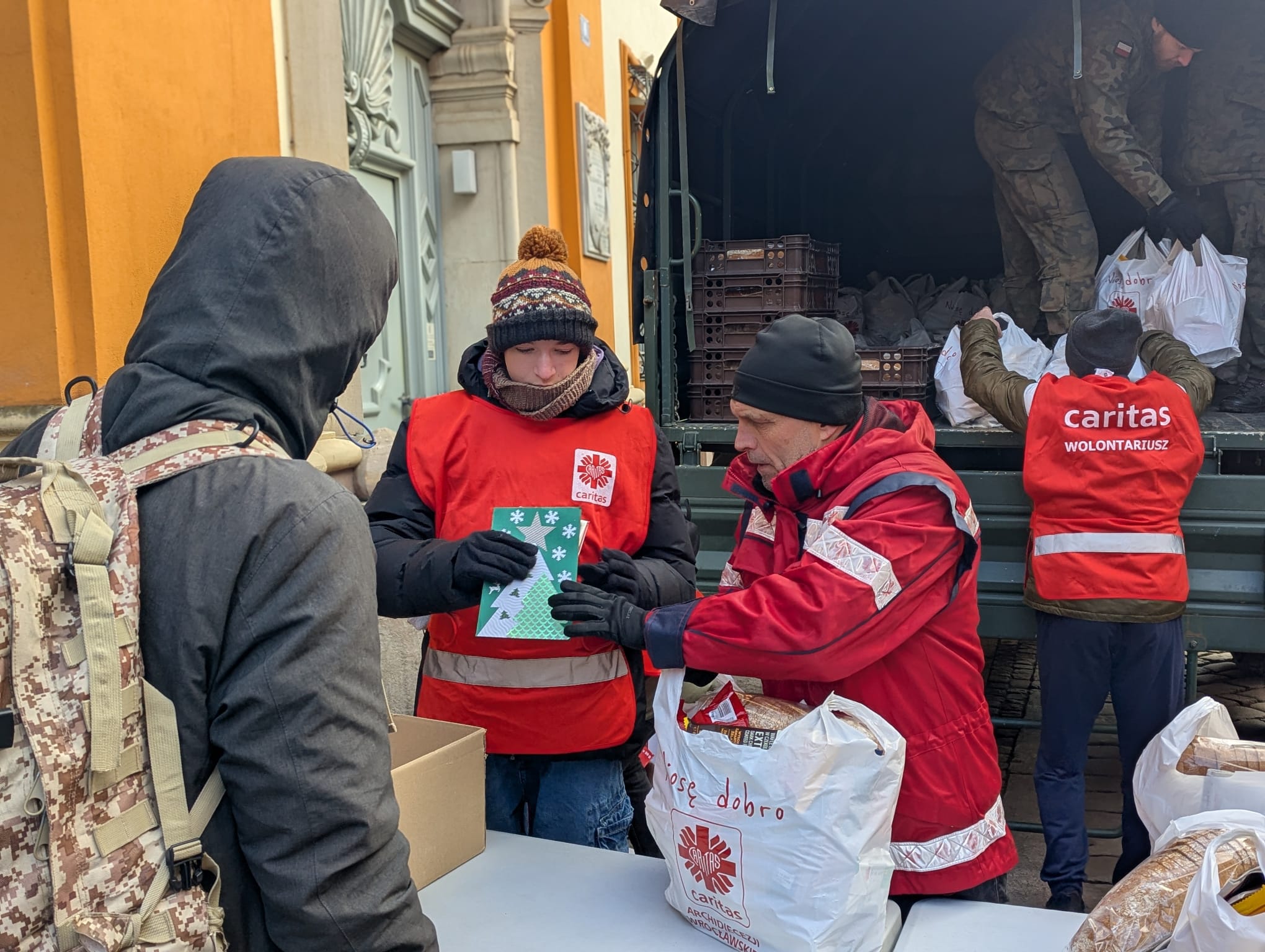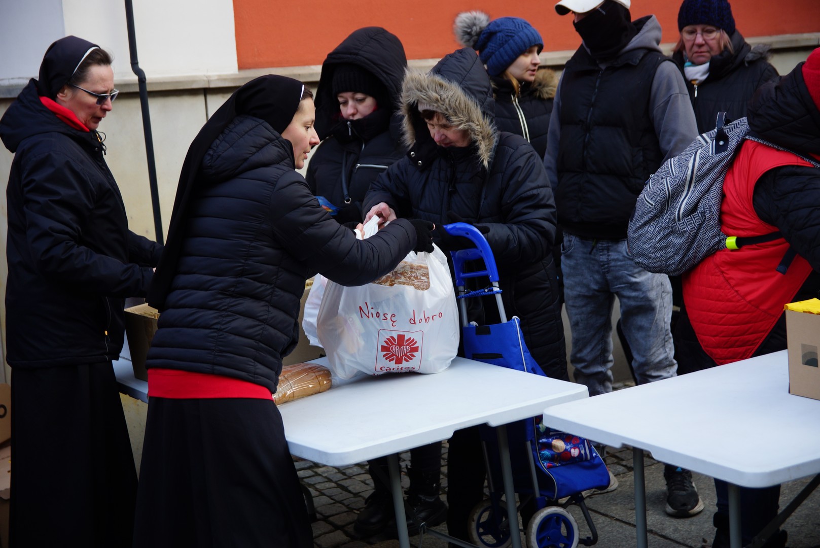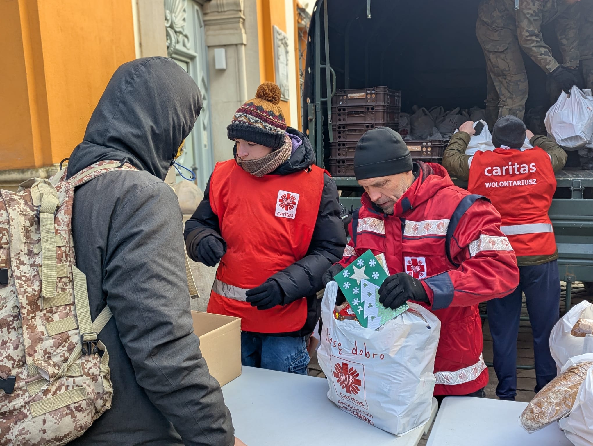 – W każdej paczce znalazł się chleb, świąteczny opłatek oraz produkty, które można łatwo przygotować, nawet bez obróbki termicznej. To poczęstunek możliwy do spożycia w praktycznie każdych warunkach. Staramy się wsłuchiwać w oczekiwania osób, którym pomagamy, i odpowiadać na ich konkretne potrzeby – wyjaśnia ks. Amrogowicz.