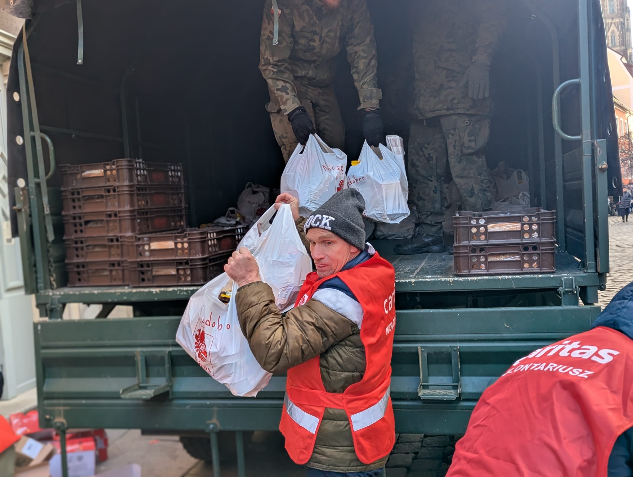 W przygotowanie i wydawanie paczek włączyli się także żołnierze 16 Dolnośląskiej Brygady Obrony Terytorialnej. Dowódca jednostki, pułkownik Edward Chyła, podkreślił znaczenie tej współpracy.