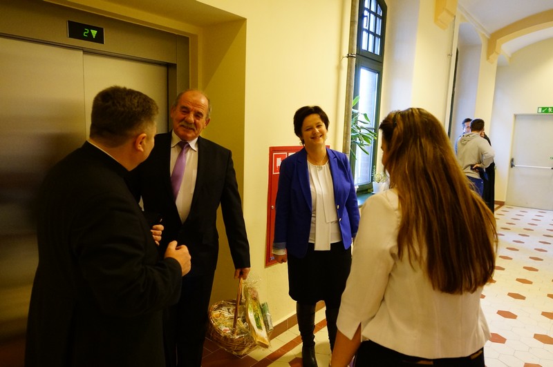 Uroczystość poświęcenia domu św. Józefa w Małkowicach rozpoczęła się wykładem przyjaciela Caritas, profesora Wojciecha Witkiewicza, człowieka pełnego otwartości i solidarności z ubogimi i potrzebującymi. W swej prelekcji dla personelu medycznego Caritas zwracał on uwagę na potrzebę humanistycznego wychowania lekarzy i pielęgniarek, by ich wiedza i umiejętności z zakresu nauk przyrodniczych uzupełnione były wiedzą o człowieku, jego psychicznych uwarunkowaniach oraz wychowaniem do służby i wrażliwością wobec cierpiących. Cytując słowa św. Jana Pawła II, wskazywał na nieustanną potrzebę wrażliwego przyglądania się człowiekowi cierpiącemu. Mówił że dziś, dzięki postępowi medycyny coraz rzadziej noce w szpitalach przerywane są krzykiem chorych, ale nie oznacza to, że cierpienia jest mniej. Ograniczanie bólu jest koniecznością, gdy już nie można leczyć, ale, pytał profesor, czy wraz ze złagodzeniem bólu fizycznego mija rzeczywiste cierpienie chorego? Cierpienie pozostaje tajemnicą – zakończył prof. Witkiewicz.