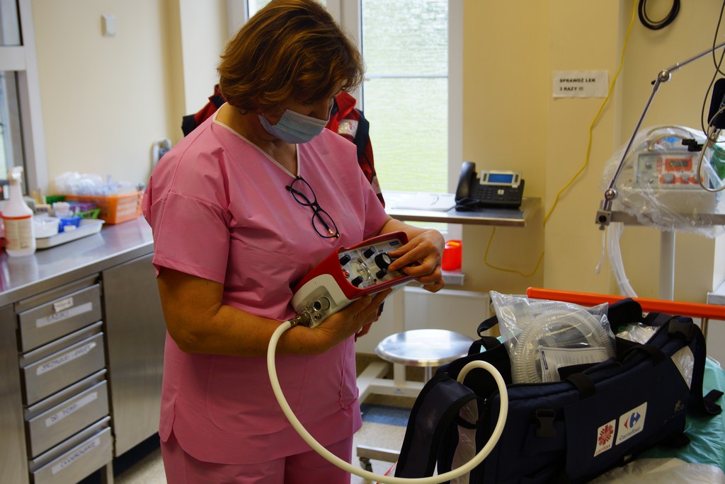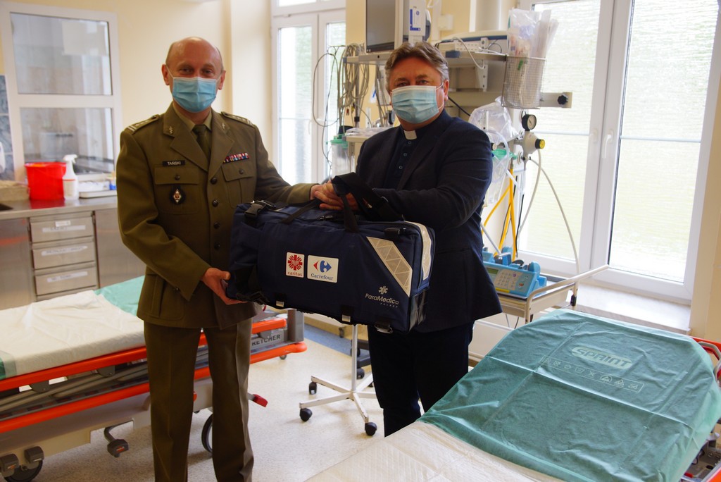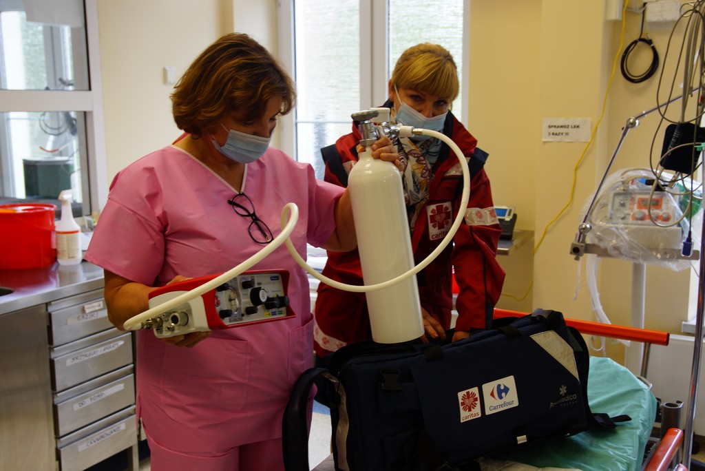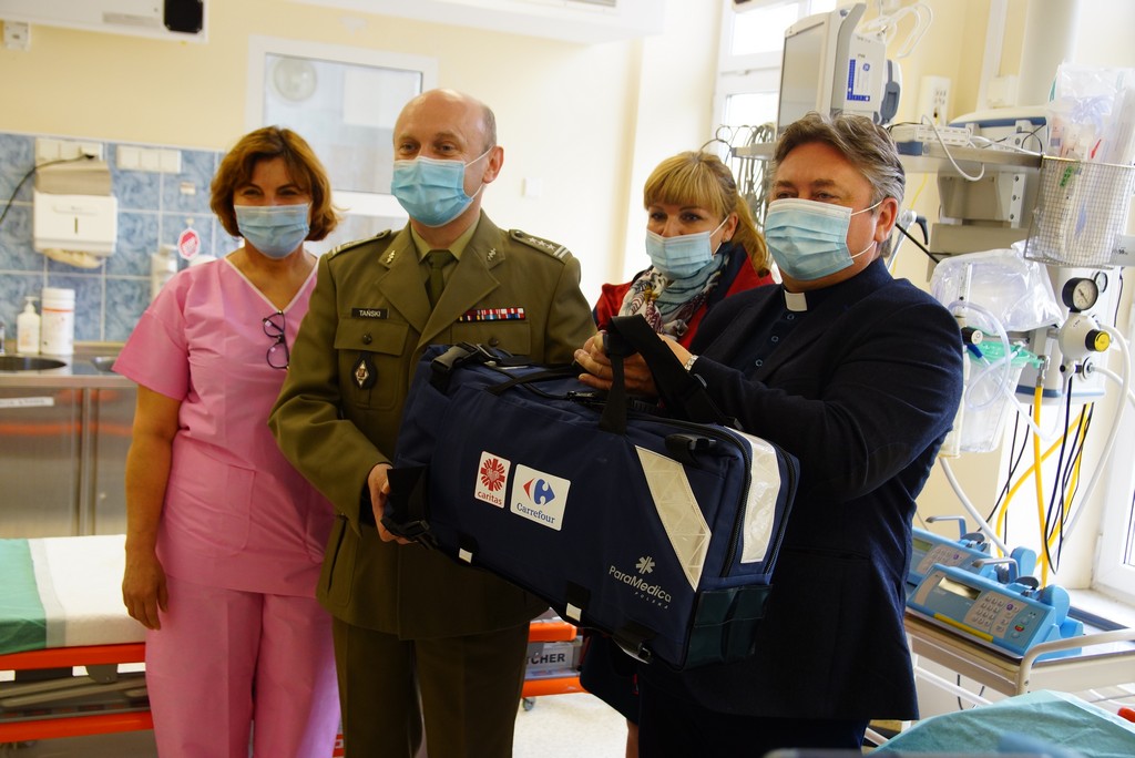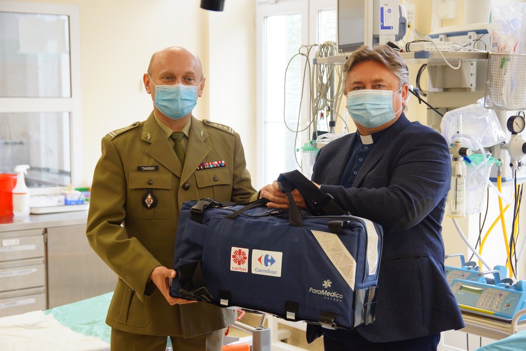 – Ten respirator transportowy na pewno będzie urządzeniem z którego będziemy na co dzień korzystali, za co serdecznie Caritas i księdzu dyrektorowi bardzo dziękuje. – wyjaśniał płk. Wojciech Tański. – W pewnych sytuacji to będzie jak dar życia. Będzie bardzo ułatwiał nam postępowanie, po prostu będzie uratował życie. W sytuacji kiedy pacjent oddycha, ale już się zaczynają pojawiać problemy, nie może jeszcze trafić na oddział docelowy czyli Oddział Intensywnej Opieki Medycznej, to jest właśnie ten moment, w którym pacjent będzie podłączony do tego aparatu.