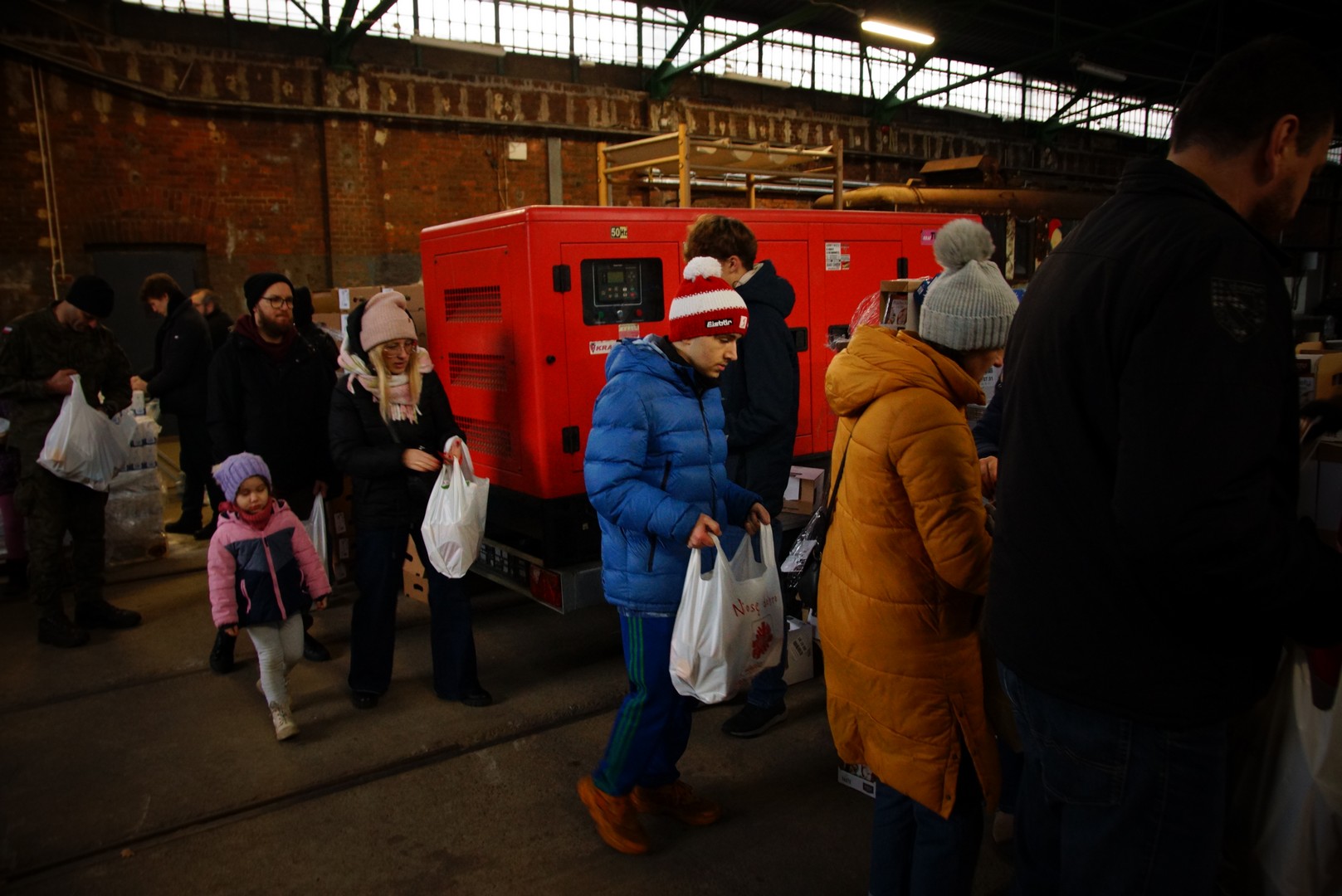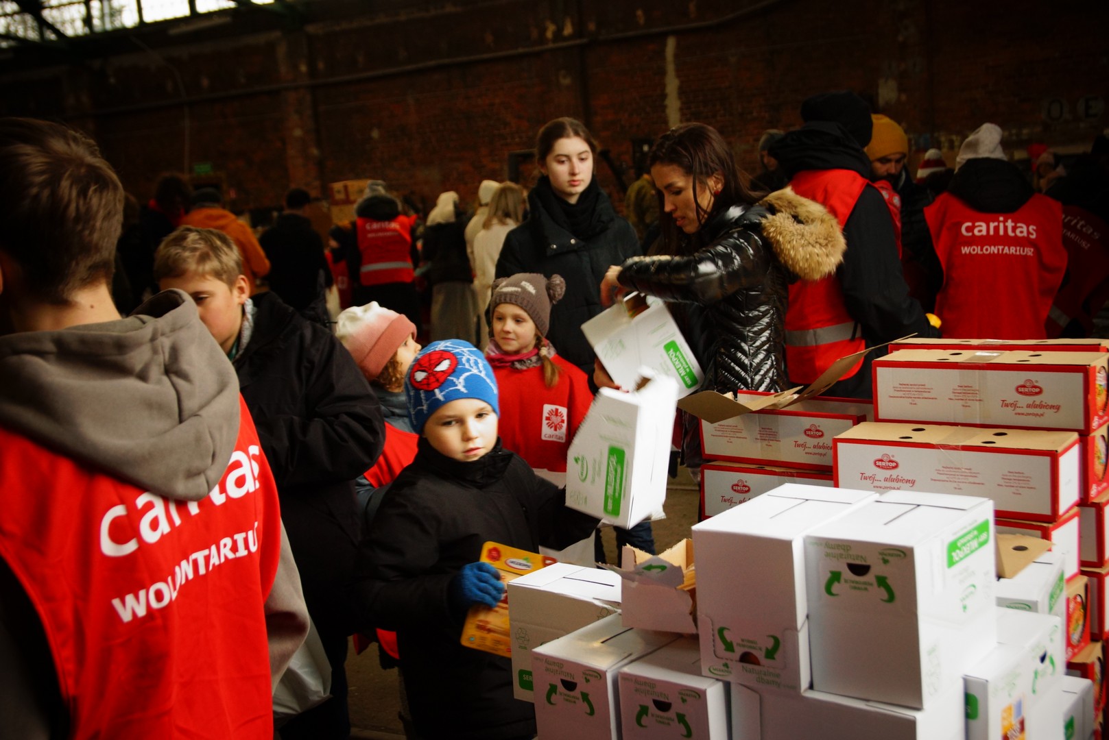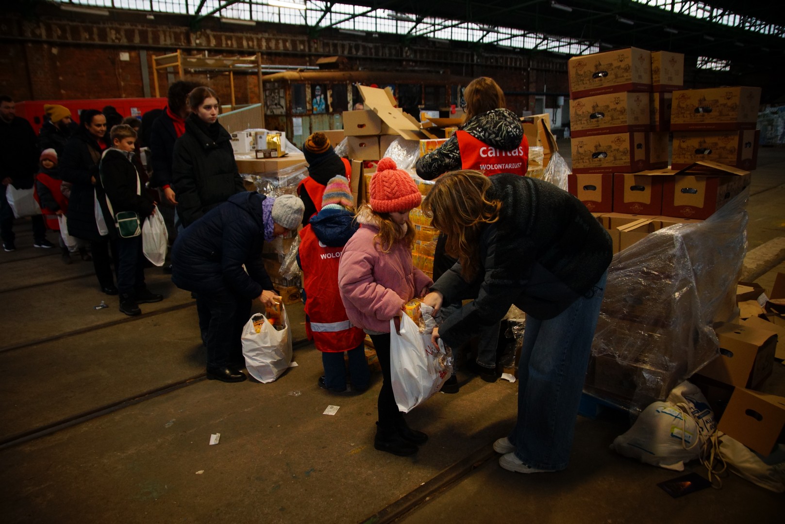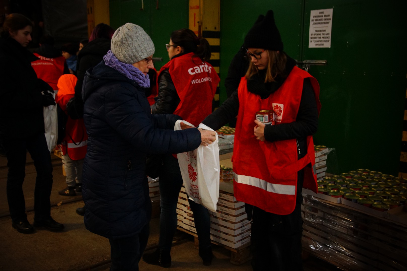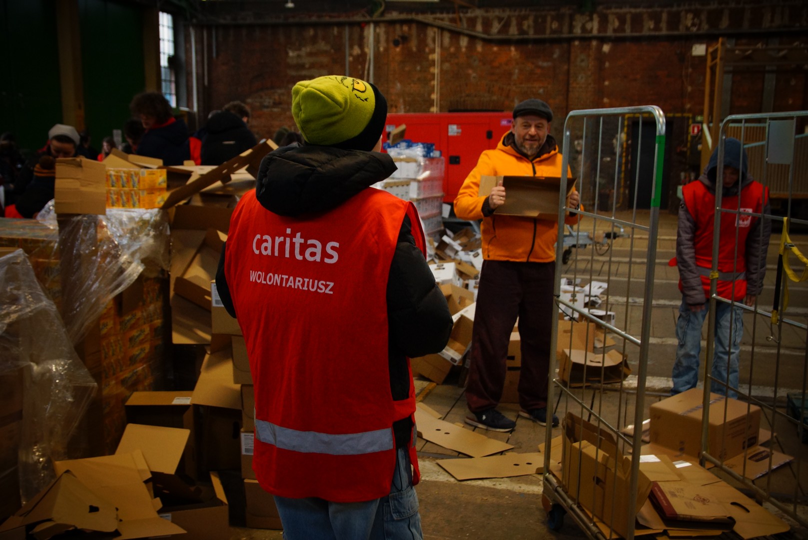 Dzień wcześniej w hali starej zajezdni tramwajowej na Dąbiu paczki zostały przygotowane, przez wolontariuszy Caritas i żołnierzy Wojsk Obrony Terytorialnej.