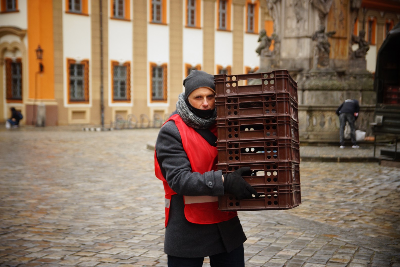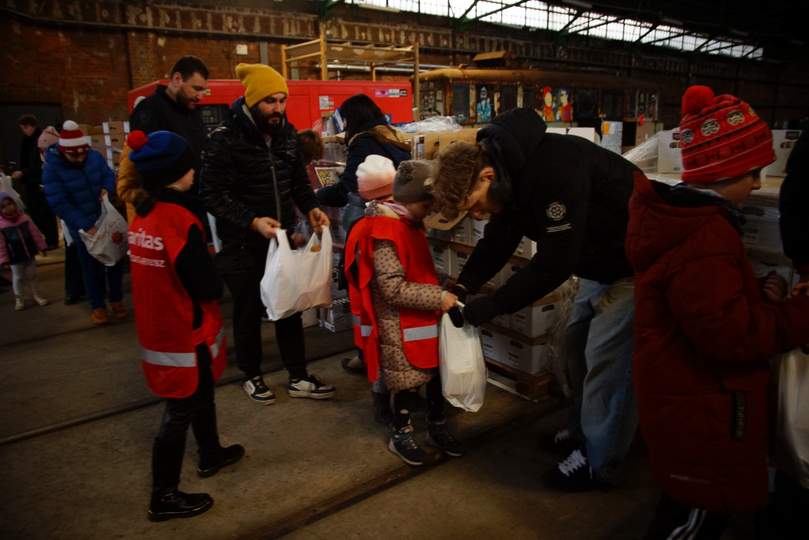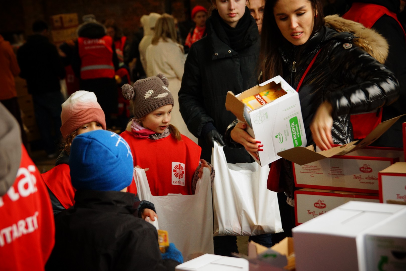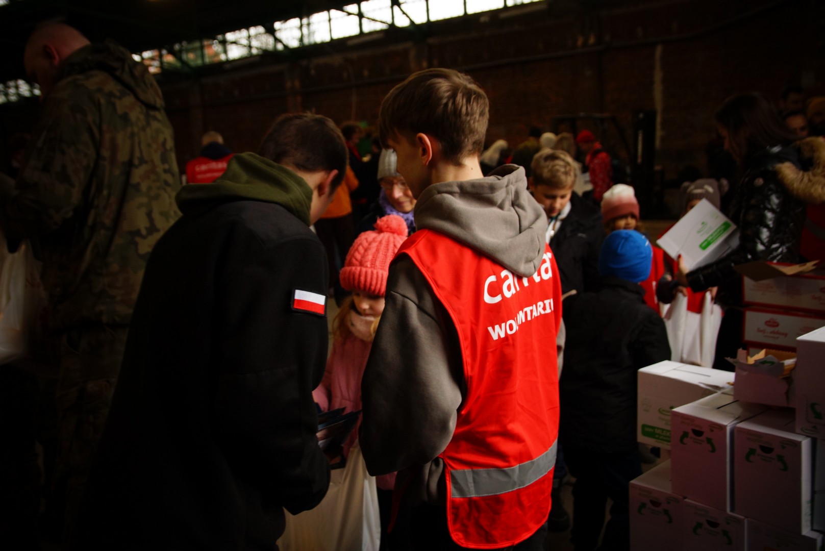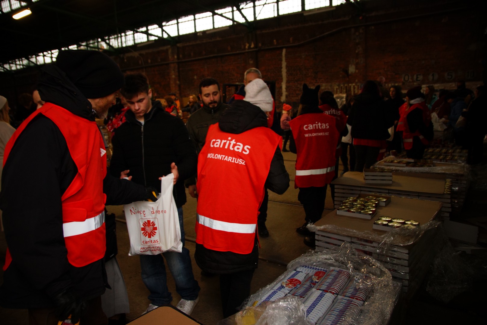Dzień wcześniej w hali starej zajezdni tramwajowej na Dąbiu paczki zostały przygotowane, przez wolontariuszy Caritas i żołnierzy Wojsk Obrony Terytorialnej.