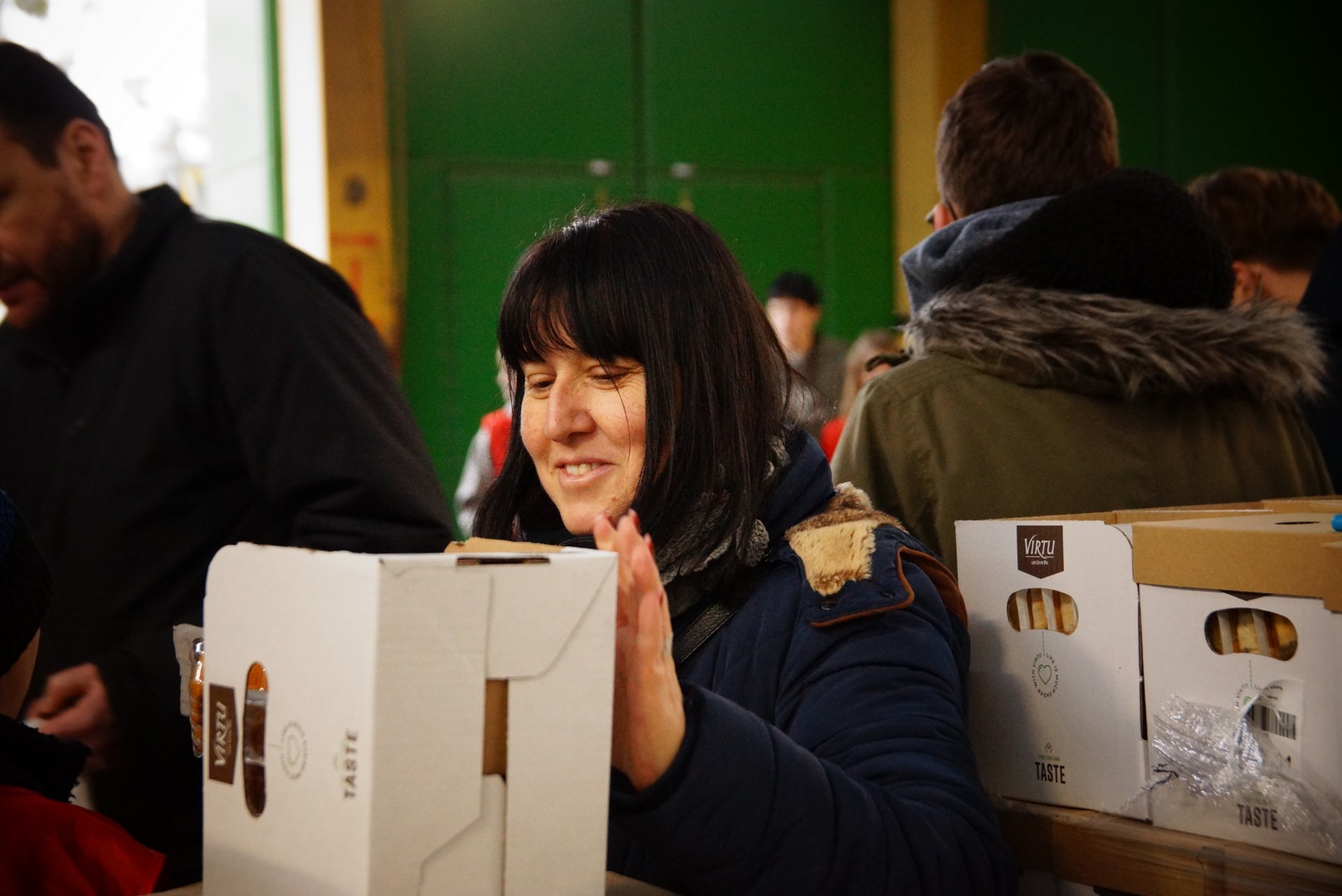 W paczkach znalazło się prawie 30 produktów dostosowanych do potrzeb osób w kryzysie bezdomności, w tym konserwy, pierogi, krokiety, świeży chleb, karton mleka, słodycze oraz tradycyjny opłatek.