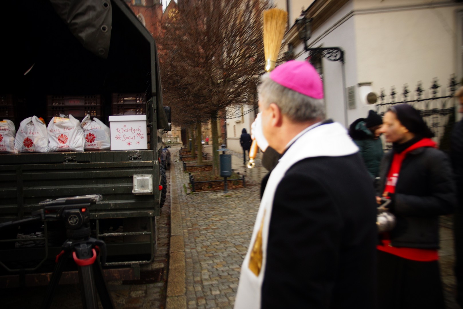– Dziękuję władzom miasta Wrocławia oraz naszym terytorialsom, na których zawsze możemy liczyć. Szczególne słowa podziękowania kieruję do dyrektora Caritas Archidiecezji Wrocławskiej oraz wszystkich wolontariuszy i pracowników. Swoimi życzeniami obejmuję osoby starsze, chore, ale również poszkodowane w powodzi. Do nich kieruję słowa nadziei i pocieszenia. Przed nami święta szczególne. Wpatrujemy się w żłóbek i dzieciątko Jezus, które nie osądza, tylko spogląda z miłością. Życzę, byśmy wszyscy doswiadczyli Bożej miłości. Jezus przychodzi na świat po to, by nas przekonać o miłości Boga. Chcemy być drobnymi pastuszkami, którzy dary przynoszą tym najbardziej potrzebującym.