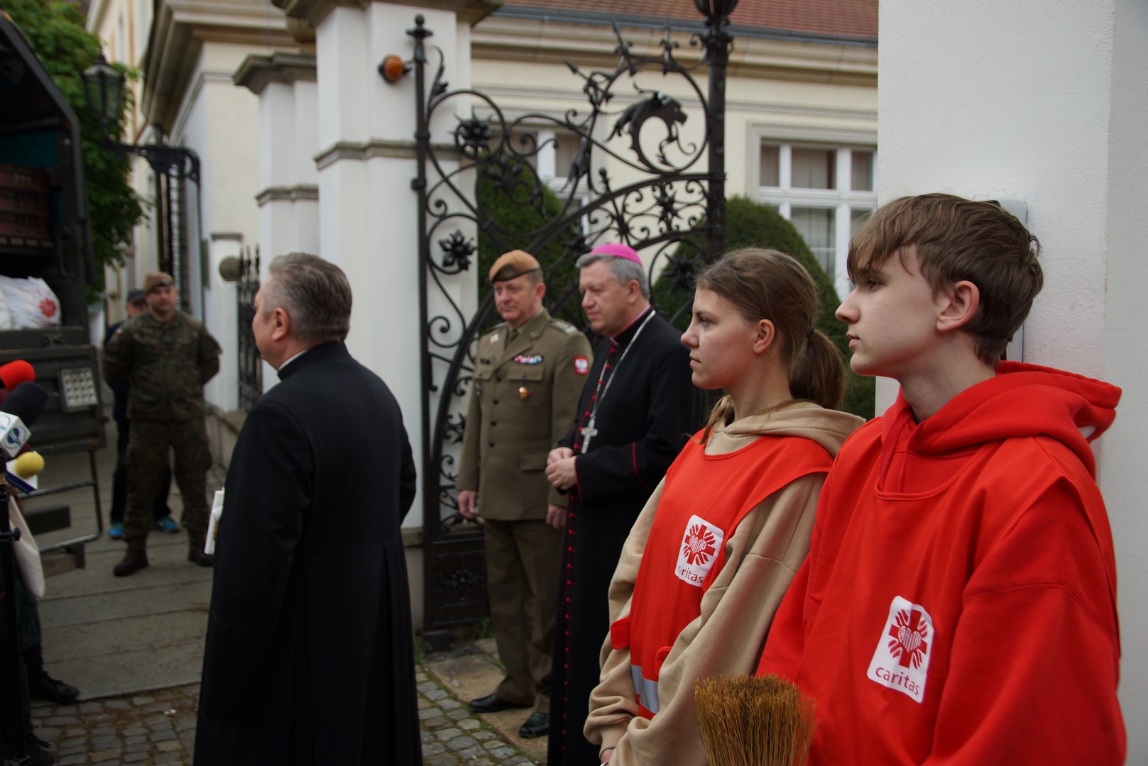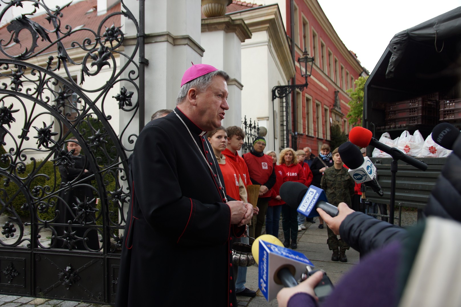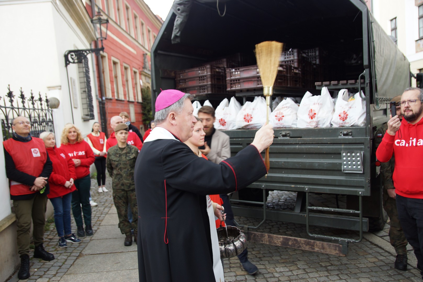Metropolita wrocławski abp Józef Kupny pobłogosławił paczki na stoły najuboższych wrocławian, a chwilę później wolontariusze Caritas oraz żołnierze 16. Dolnośląskiej Brygady Obrony Terytorialnej rozdali je potrzebującym.