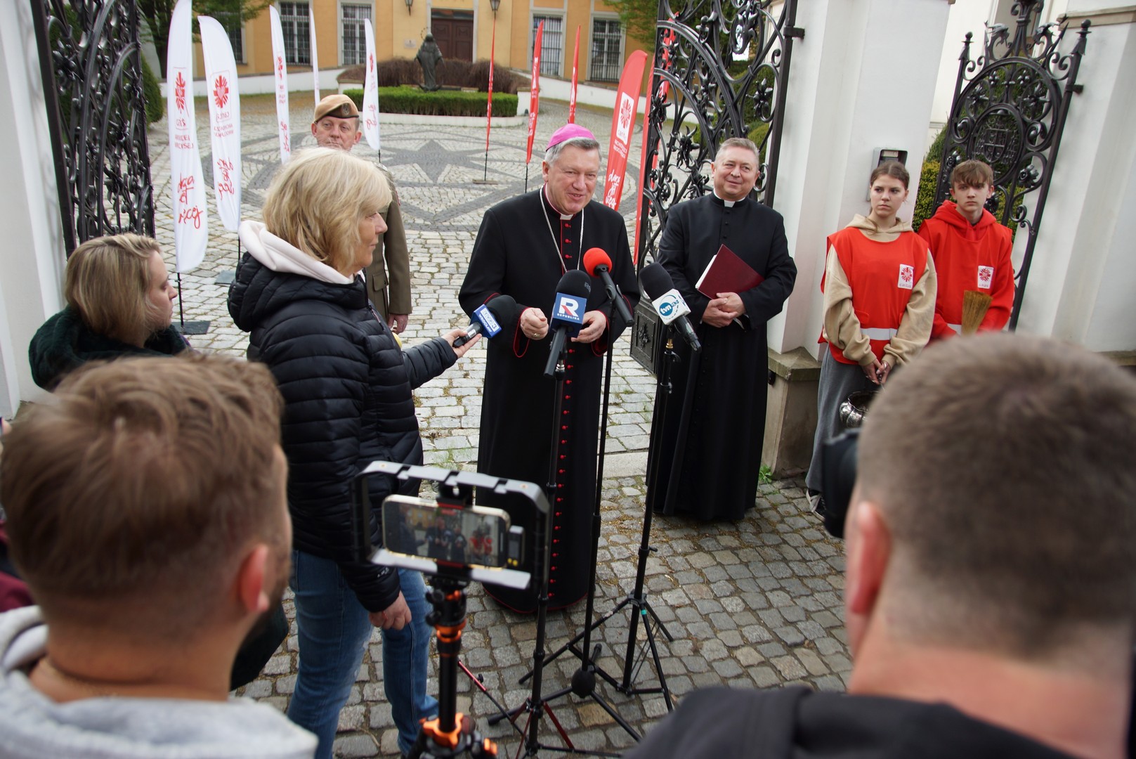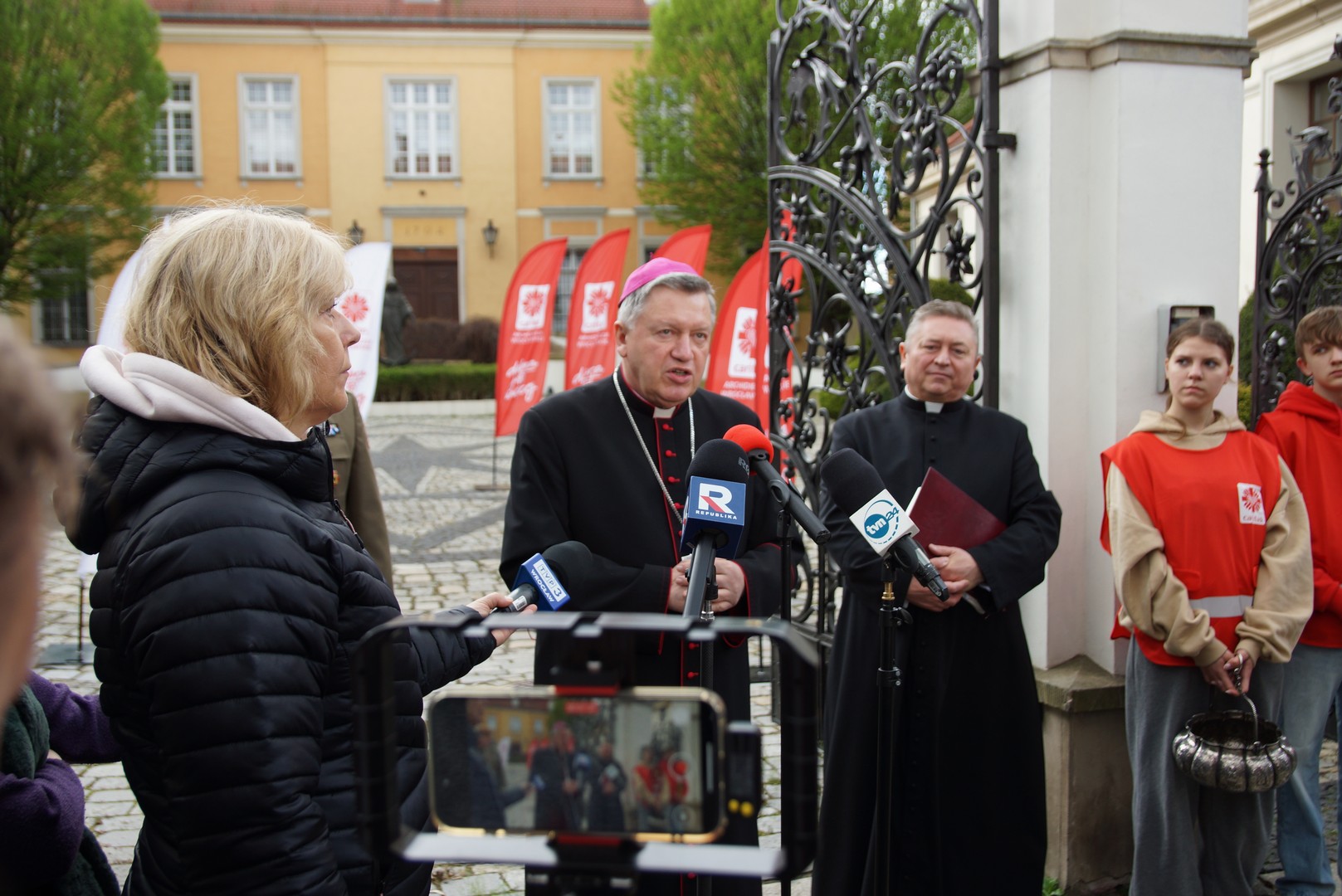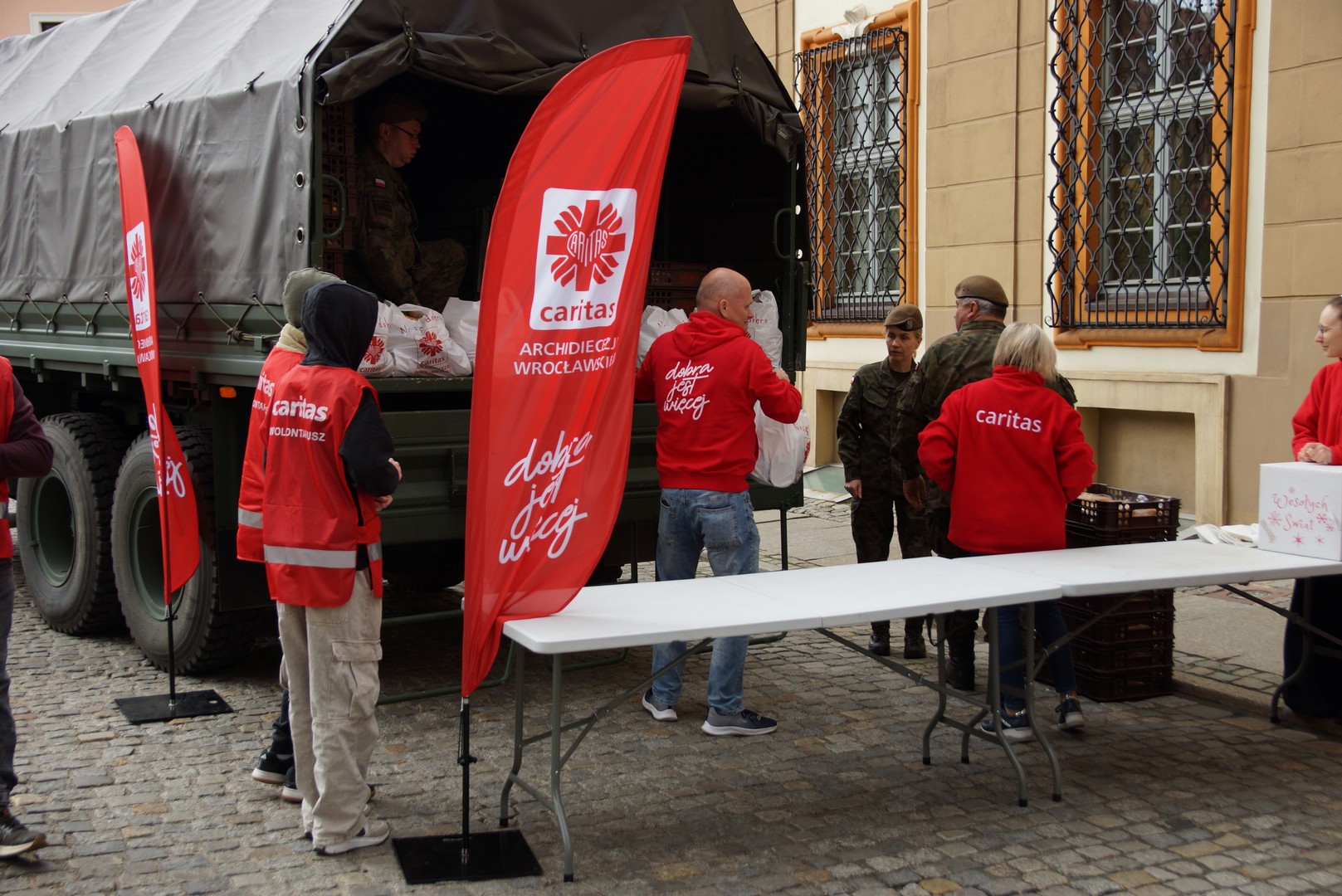 Metropolita wrocławski abp Józef Kupny pobłogosławił paczki na stoły najuboższych wrocławian, a chwilę później wolontariusze Caritas oraz żołnierze 16. Dolnośląskiej Brygady Obrony Terytorialnej rozdali je potrzebującym.