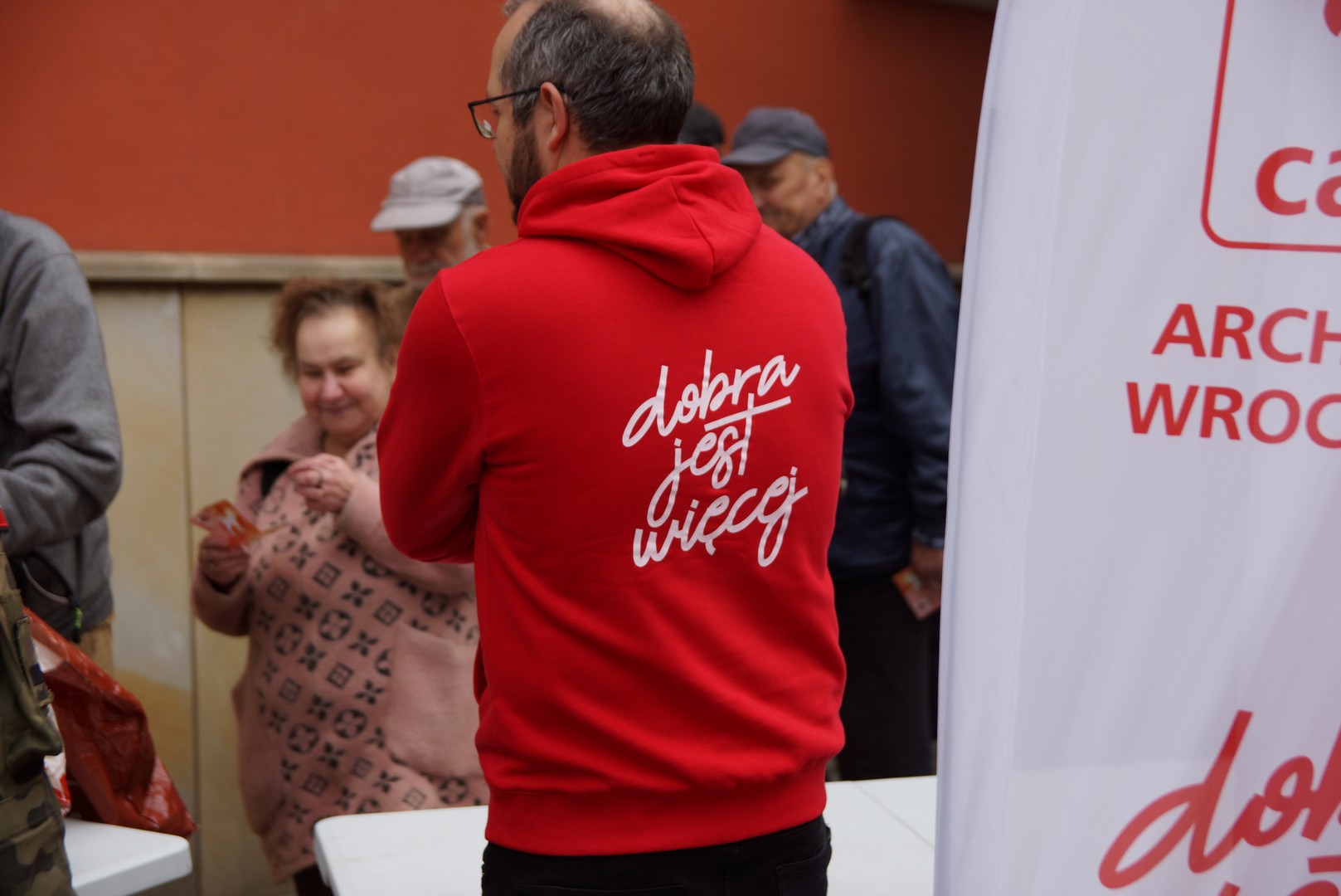 – Wydawałoby się, że to tylko paczki – a przecież to cały łańcuch dobra. Dziś rozdaliśmy 500 paczek zakupionych z ofiar wiernych Archidiecezji Wrocławskiej. Kolejne 2 000 przygotowali i rozdali wolontariusze Parafialnych Zespołów Caritas. Żywność, którą przekazali, pochodziła ze zbiórek w sklepach podczas akcji „Tak. Pomagam!” – zebrano wówczas prawie 5 ton produktów. Dodatkowo żywność zbierano w szkołach – tylko jedna ze szkół, w Prusicach, zebrała niemal tonę produktów – oraz w kościołach, gdzie przez cały Wielki Post wystawione były specjalne kosze. Wierni wkładali do nich torby w ramach akcji „Talent Miłosierdzia”, by podzielić się z potrzebującymi – wyjaśnia Paweł Trawka, rzecznik Caritas Archidiecezji Wrocławskiej.
