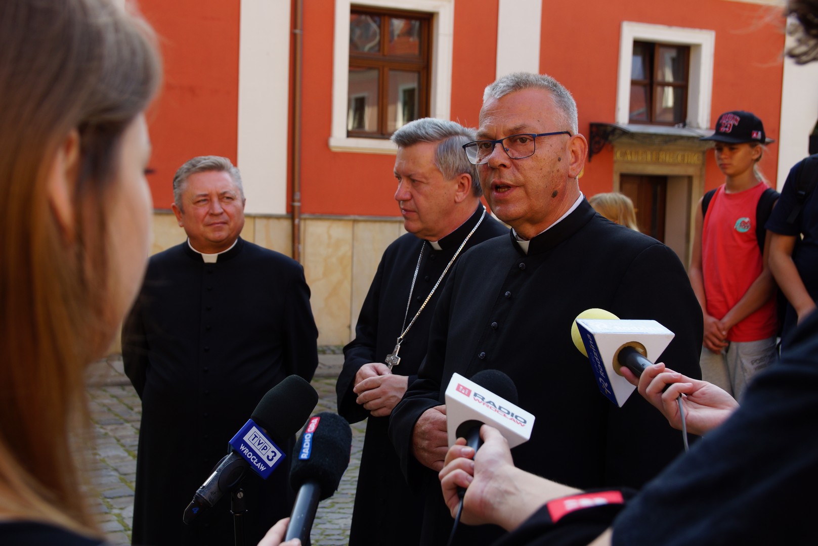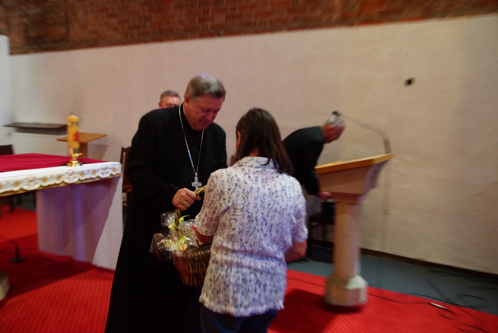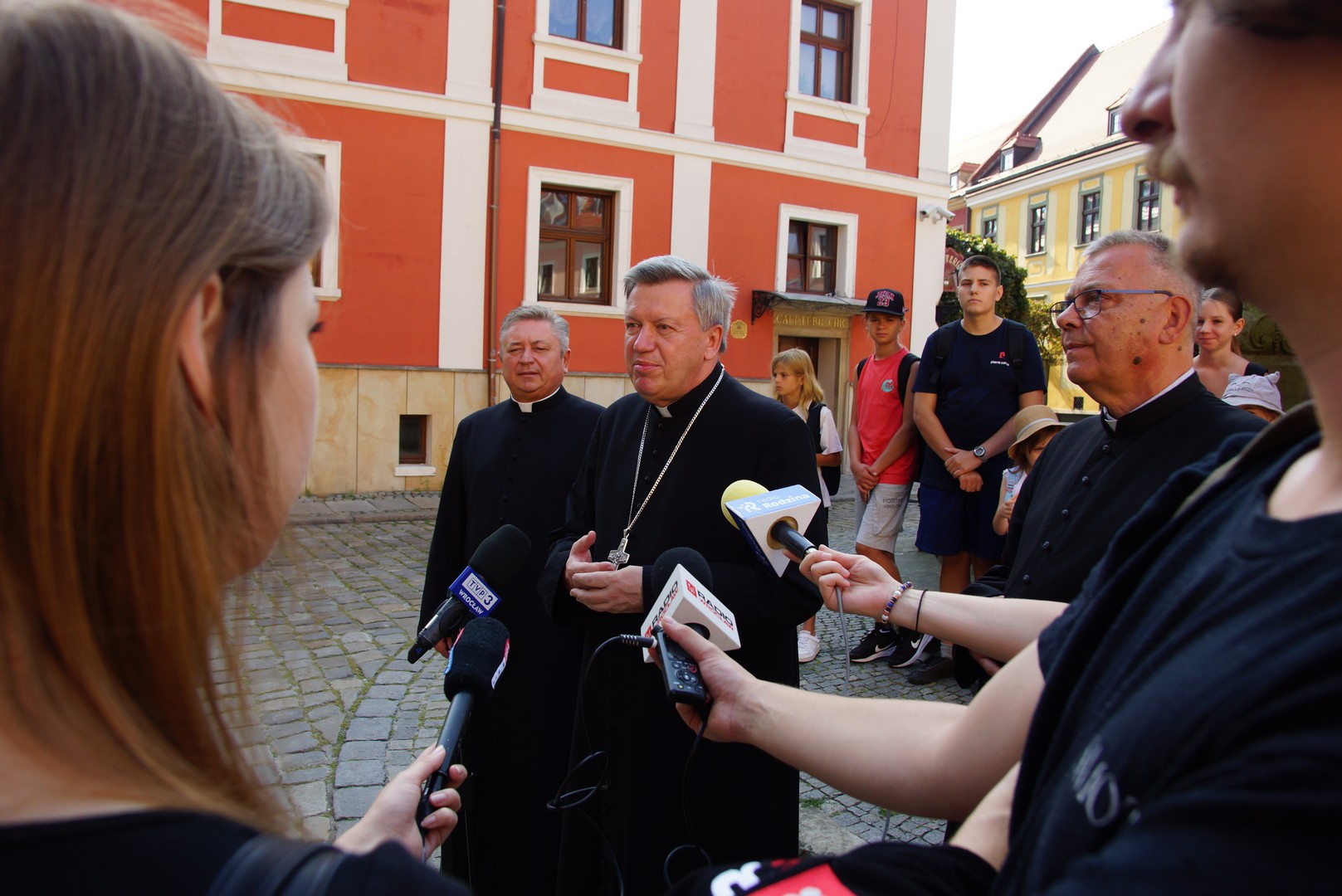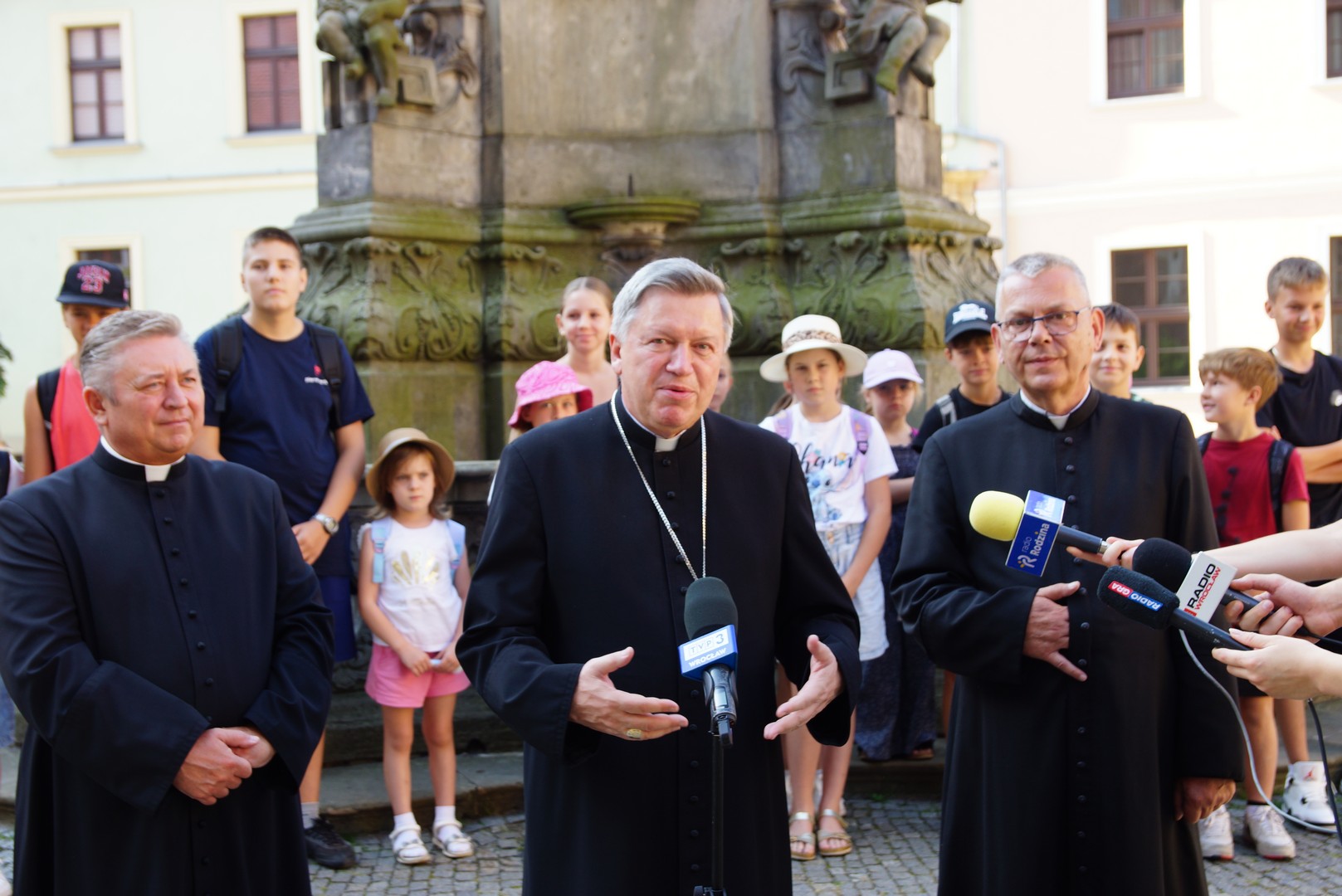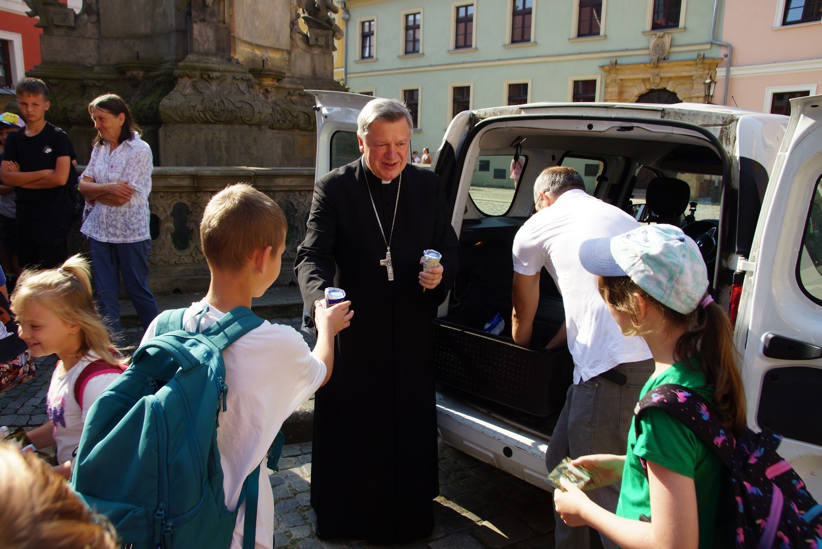 Najpierw dzieci przywitał w kościele metropolita wrocławski, abp Józef Kupny. Były serdeczne rozmowy, modlitwa i dużo uśmiechu. Od społeczności Lewina ksiądz arcybiskup, ks. Dariusz Amrogowicz, dyrektor Caritas Archidiecezji Wrocławskiej oraz Paweł Trawka, jałmużnik arcybiskupi otrzymali podziękowania i pamiątkowe statuetki. Chwilę później, przy figurze św. Jana Nepomucena, arcybiskup spotkał się z dziennikarzami, by opowiedzieć o tej inicjatywie i skali pomocy, jaką otrzymał Lewin Brzeski.