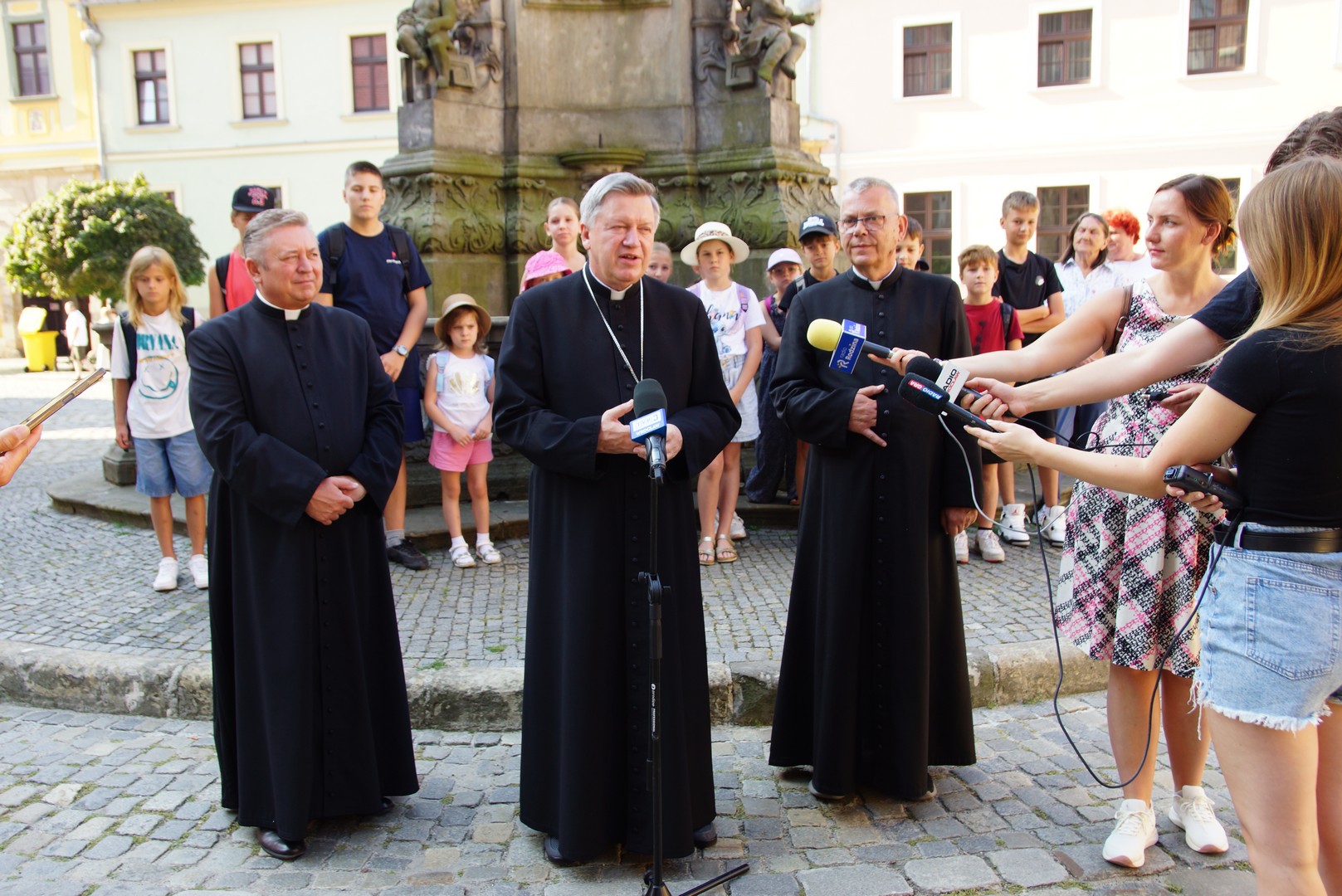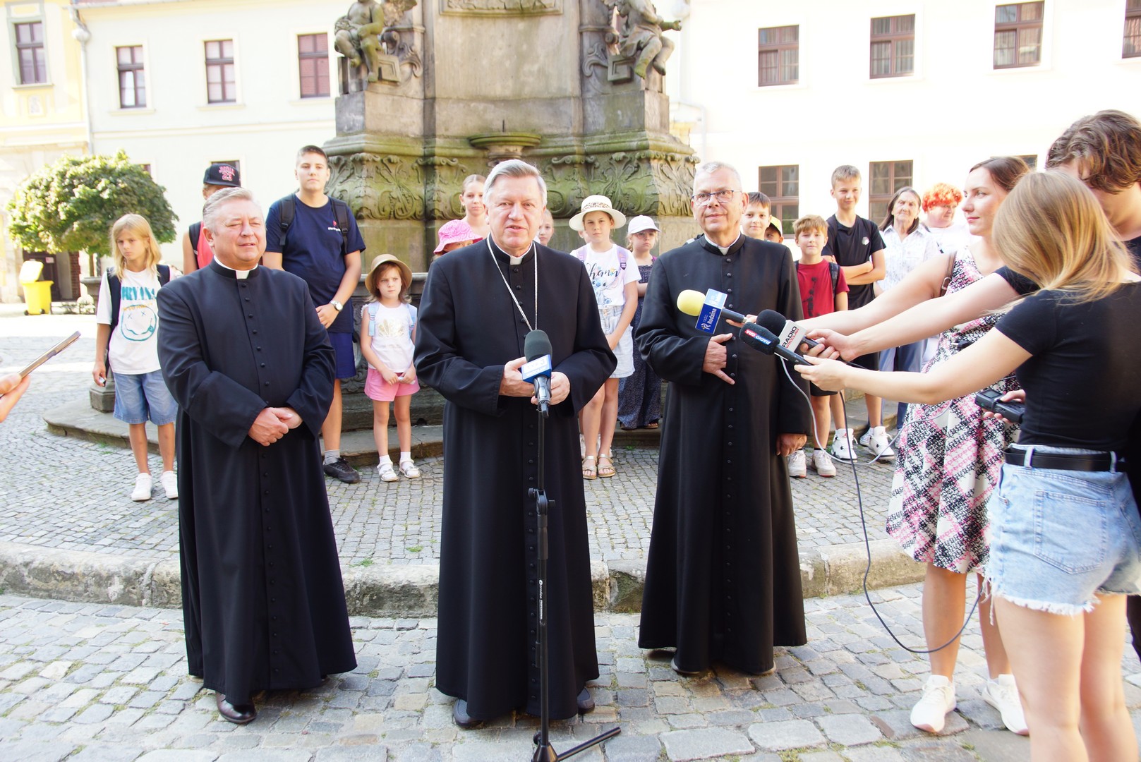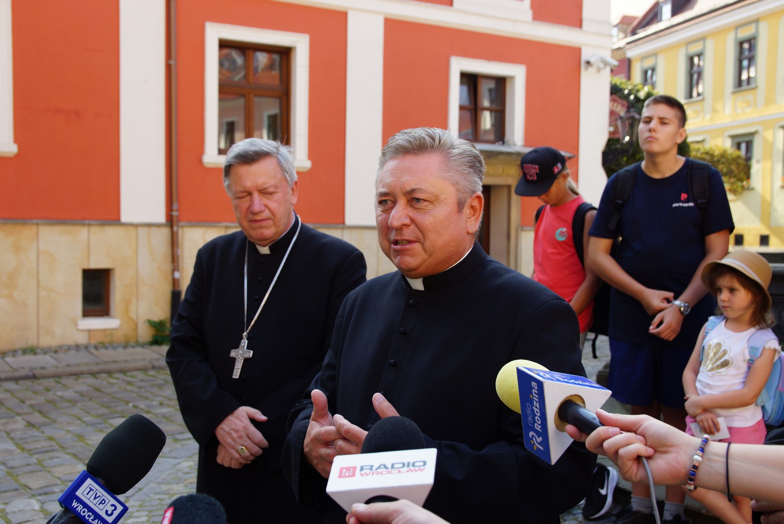 Najpierw dzieci przywitał w kościele metropolita wrocławski, abp Józef Kupny. Były serdeczne rozmowy, modlitwa i dużo uśmiechu. Od społeczności Lewina ksiądz arcybiskup, ks. Dariusz Amrogowicz, dyrektor Caritas Archidiecezji Wrocławskiej oraz Paweł Trawka, jałmużnik arcybiskupi otrzymali podziękowania i pamiątkowe statuetki. Chwilę później, przy figurze św. Jana Nepomucena, arcybiskup spotkał się z dziennikarzami, by opowiedzieć o tej inicjatywie i skali pomocy, jaką otrzymał Lewin Brzeski.