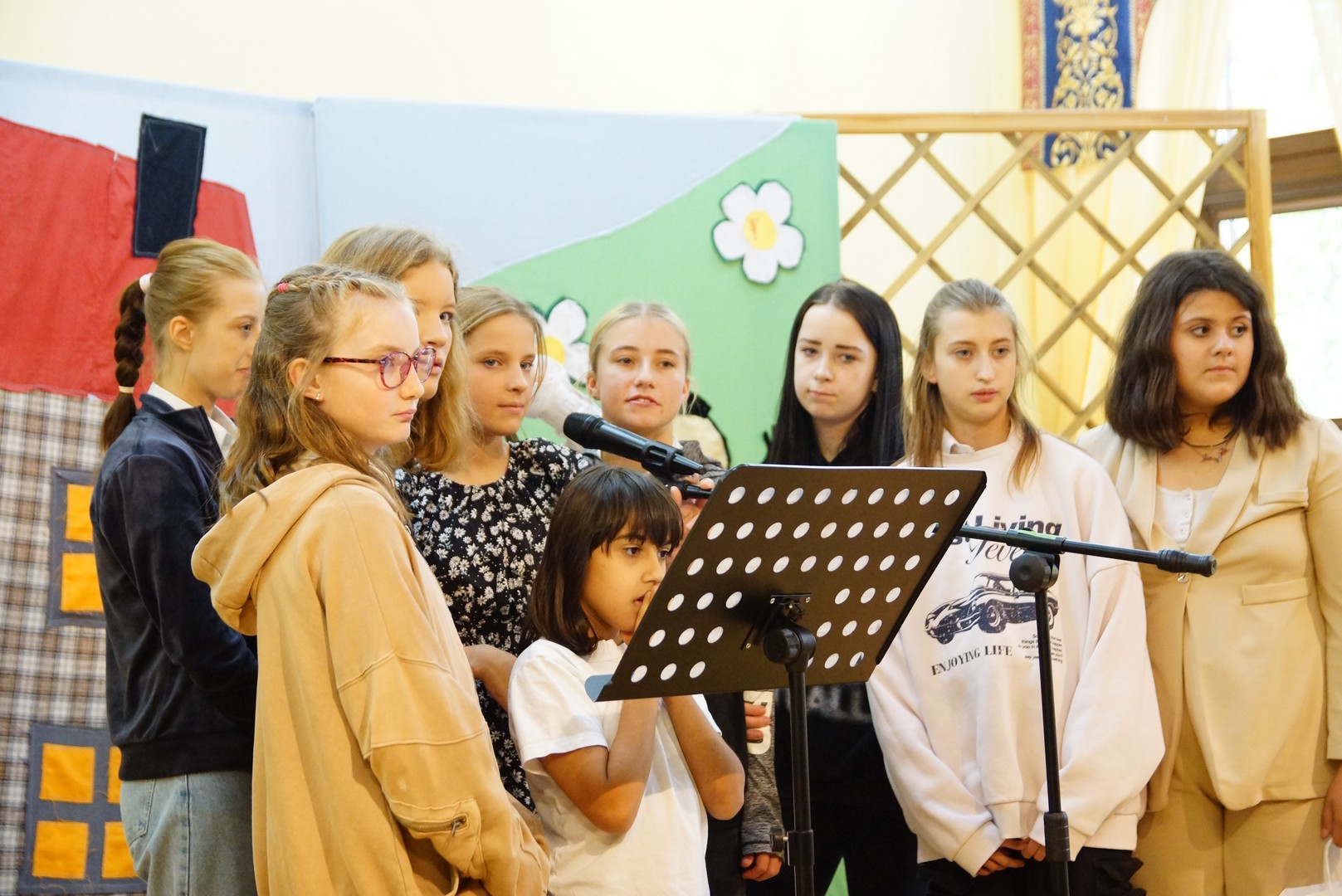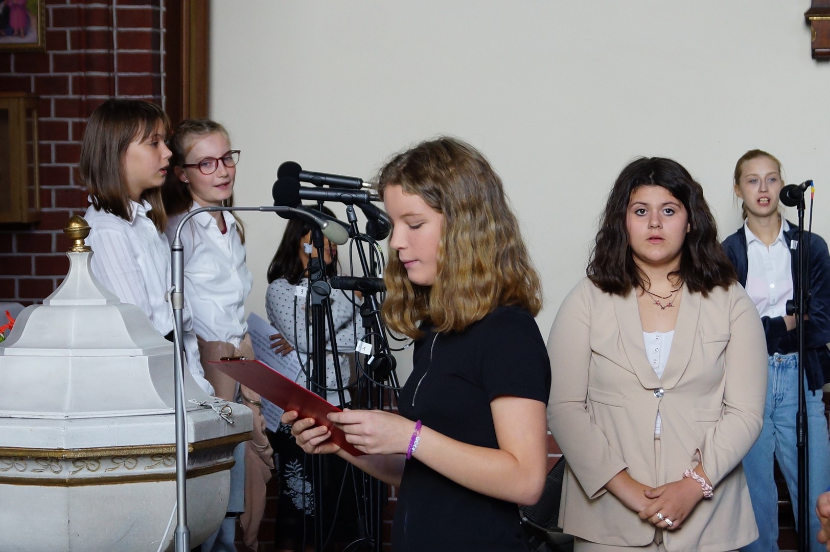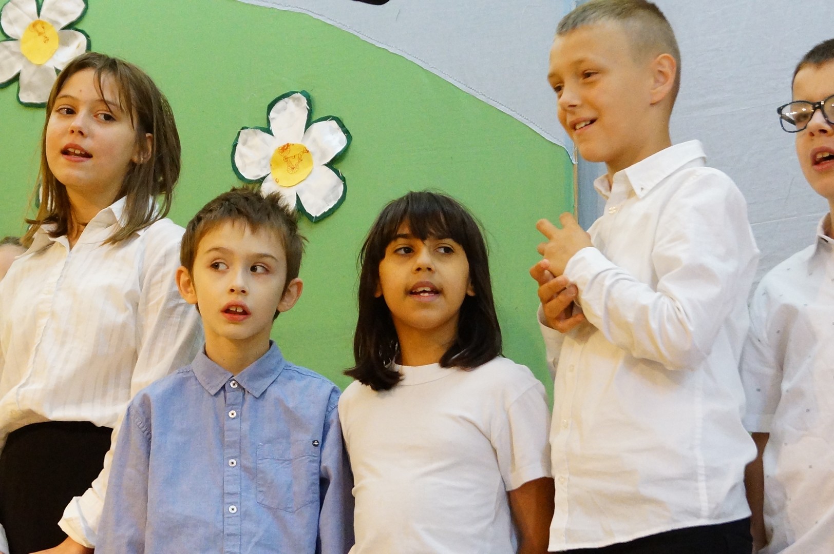 Nie zabrakło też artystycznych niespodzianek – dzieci przygotowały recytacje wierszy i śpiewały piosenki. Schola szkolna zaśpiewała autorską wersję znanej melodii „Lato czeka”, zmieniając słowa tak, aby idealnie pasowały do powrotu do szkoły: o radości z ponownego spotkania, o kolegach, przygodach w szkolnych ławach i o wyzwaniach związanych z odkrywaniem wiedzy.